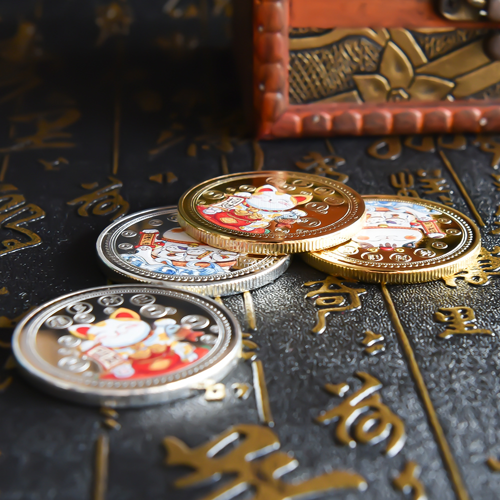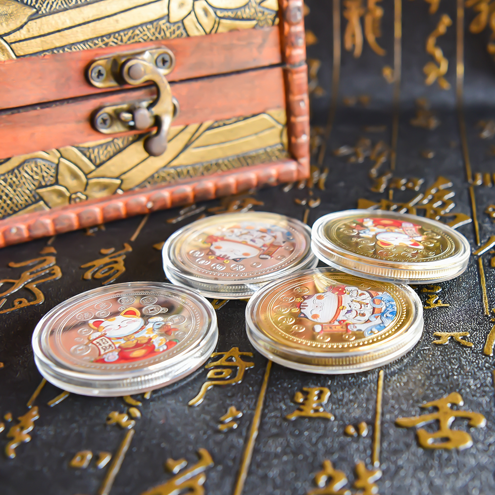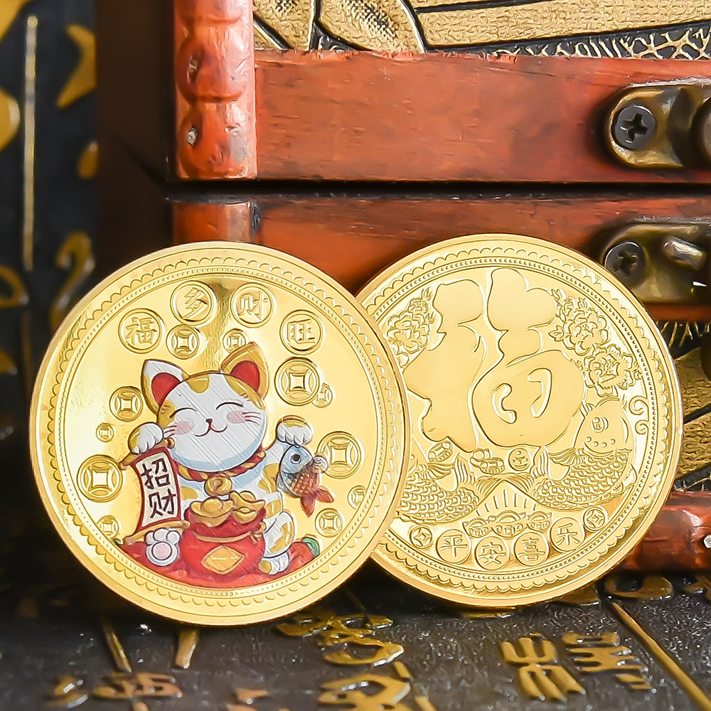 福气满满招财猫开运纪念币多福旺财彩色金银硬币新年礼物品伴手礼