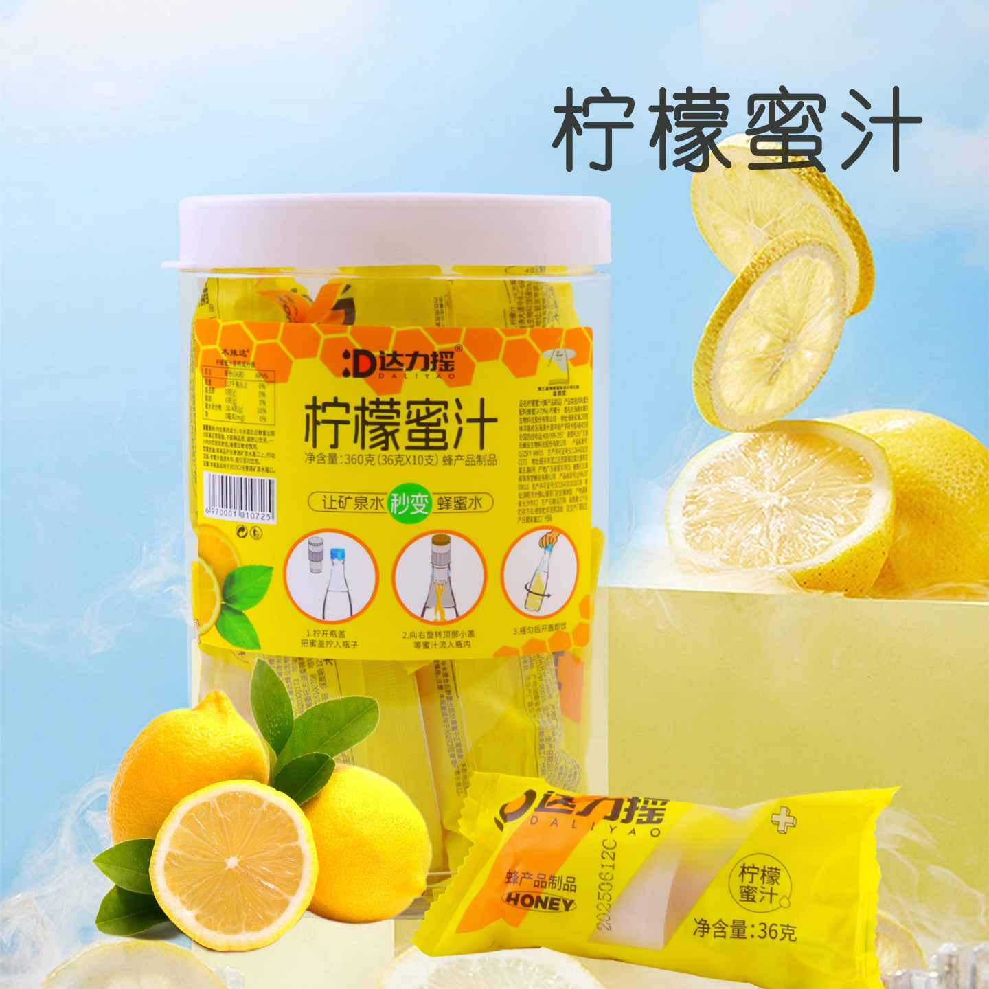 达力摇蜜汁整桶瓶盖式36g便携柠檬百香果小青柑蜂蜜水果蜜盖通用
