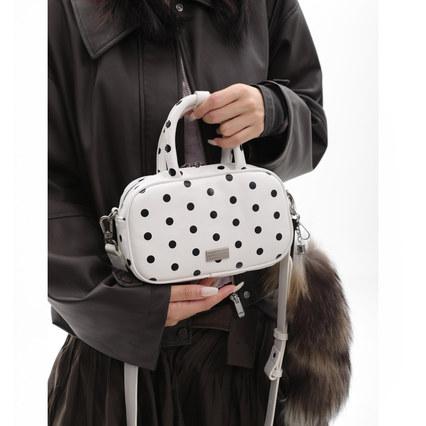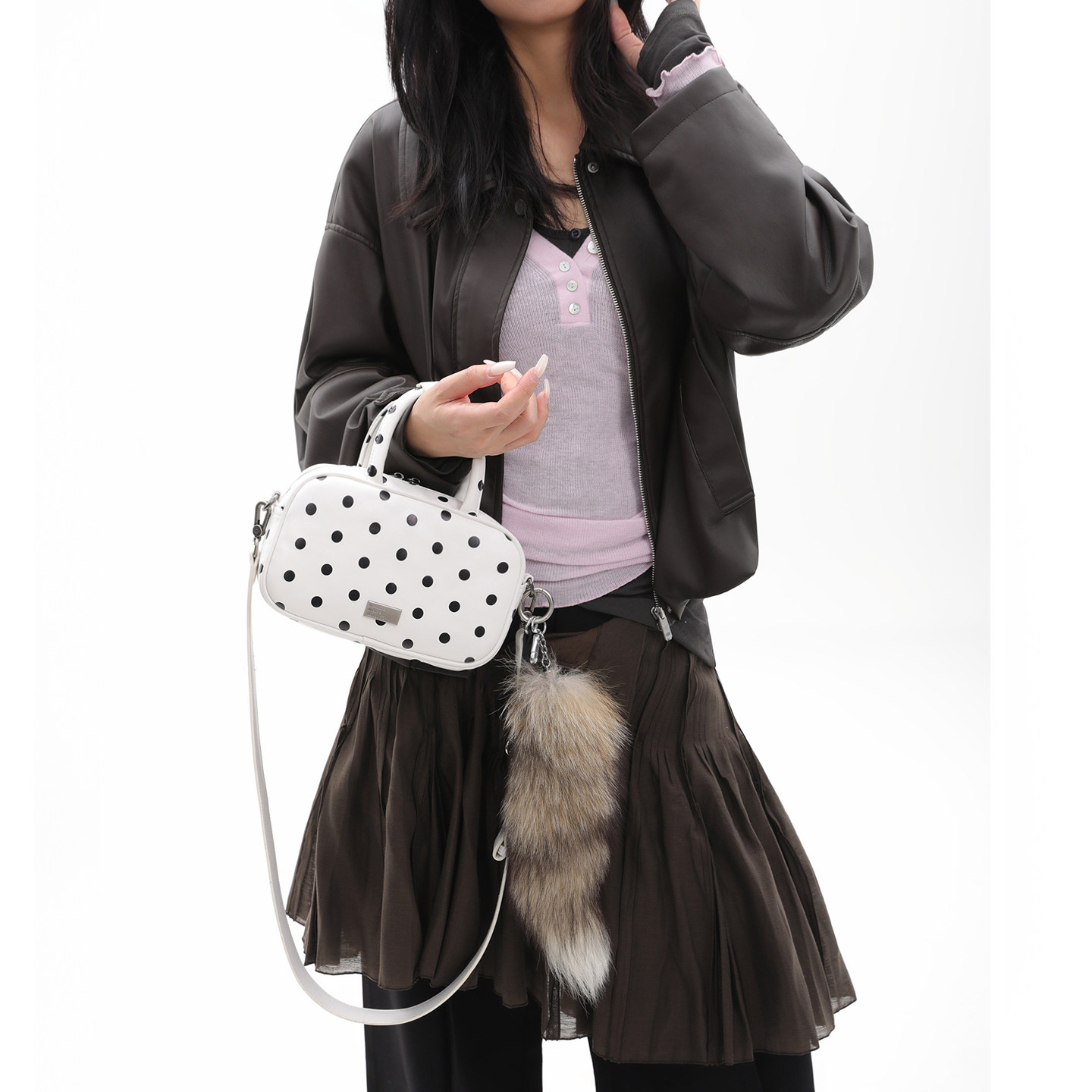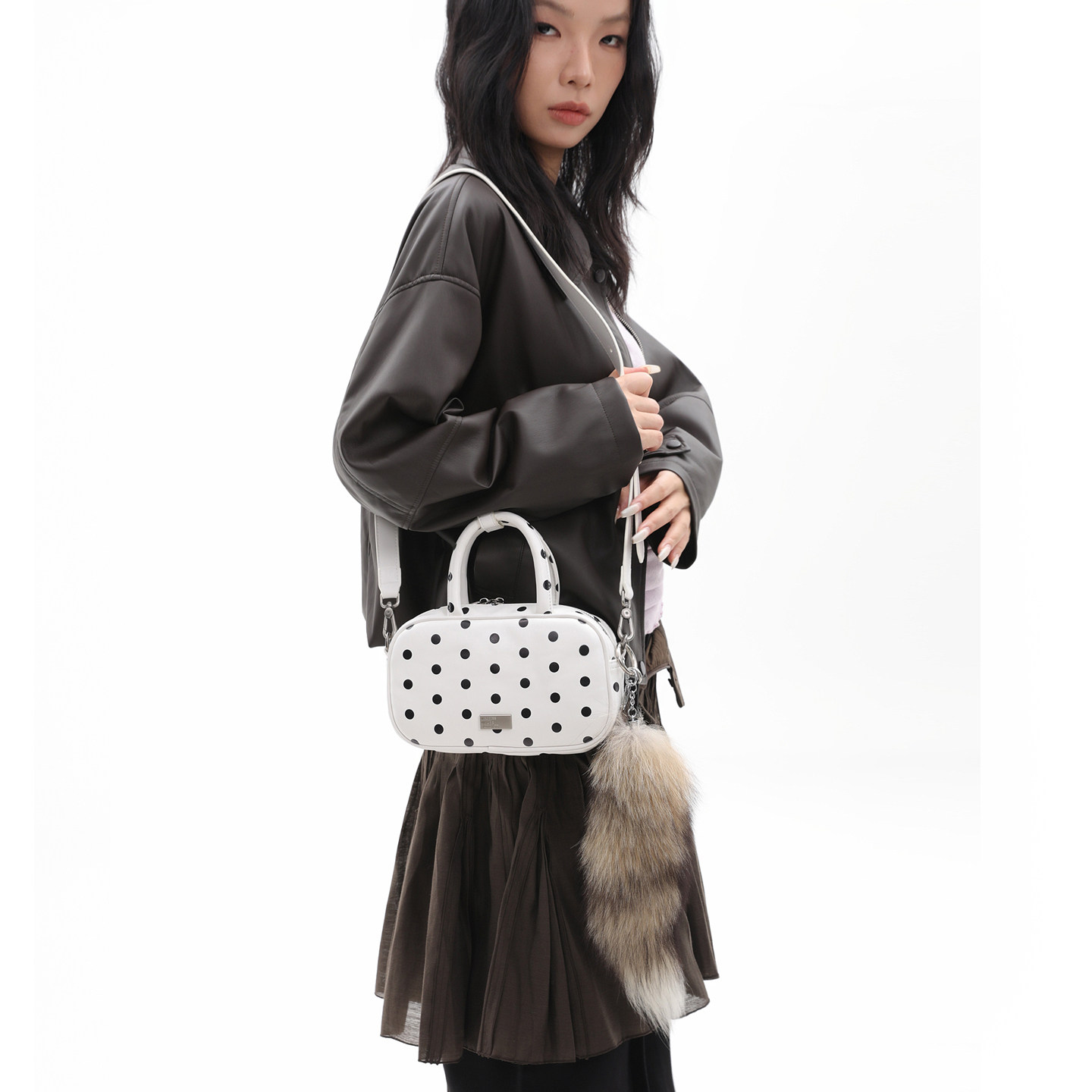 简着25AW 原创 帕米尔 波点手提小方包 波士顿斜挎包毛毛尾巴挂饰