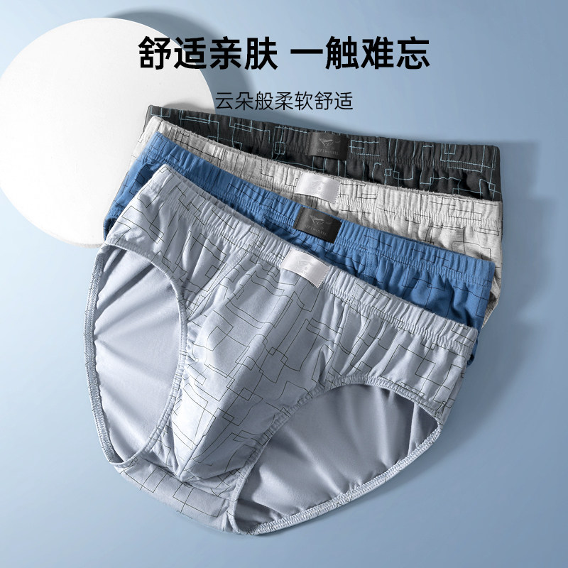 七匹狼男士内裤三角裤男生纯棉抗菌透气底裤男式新款全棉短裤