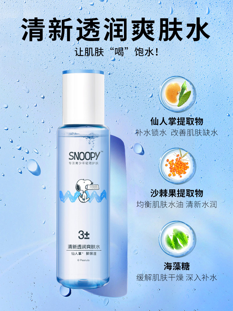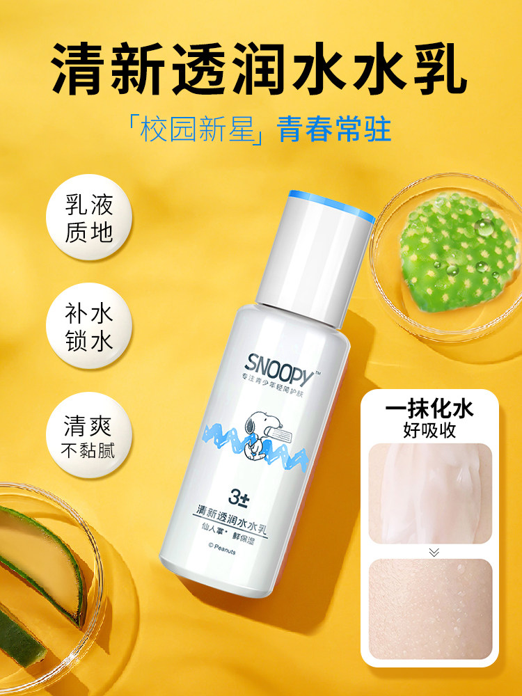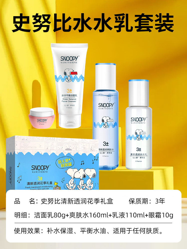 史努比优韵儿水润补水净透补水套装洁面水乳霜组合青少年学生用
