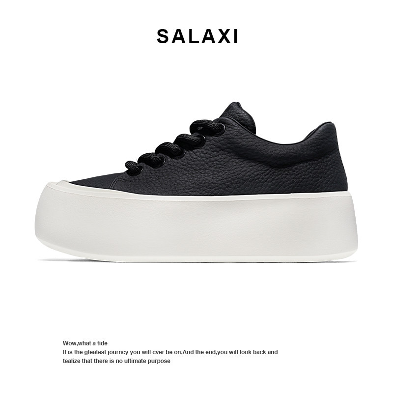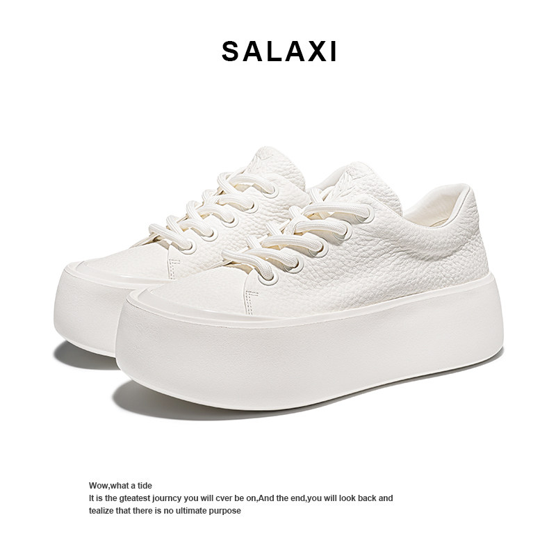 Salaxi/莎莱茜2025新款小白鞋男荔枝纹饼干鞋厚底增高休闲板鞋女