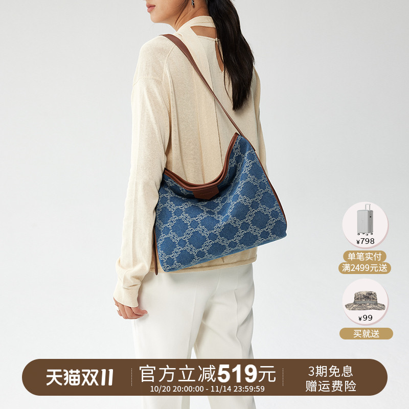 万里马丹宁复古水桶托特包女单肩斜挎极简风hobo腋下包大容量