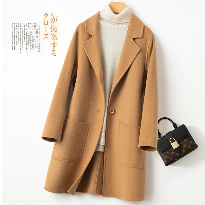 新款双面羊绒大衣女中长款西装双面呢小个子羊毛呢子工装毛呢外套
