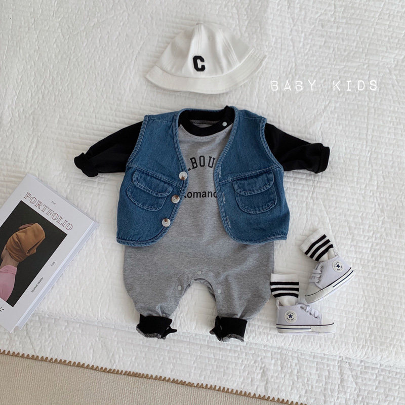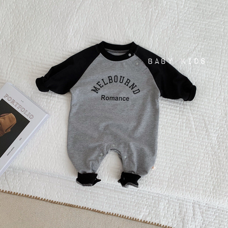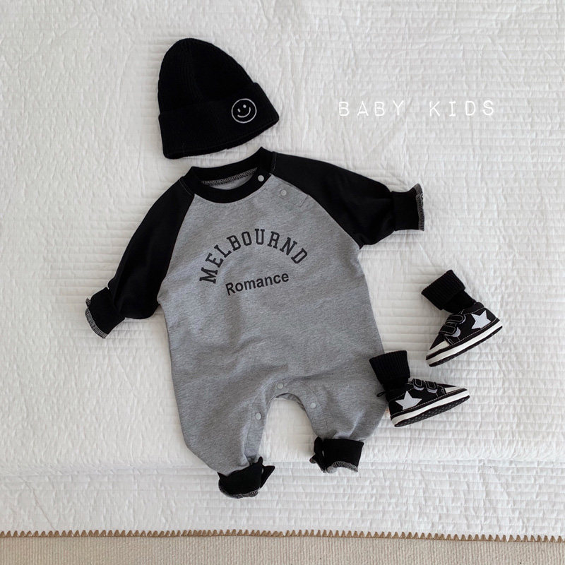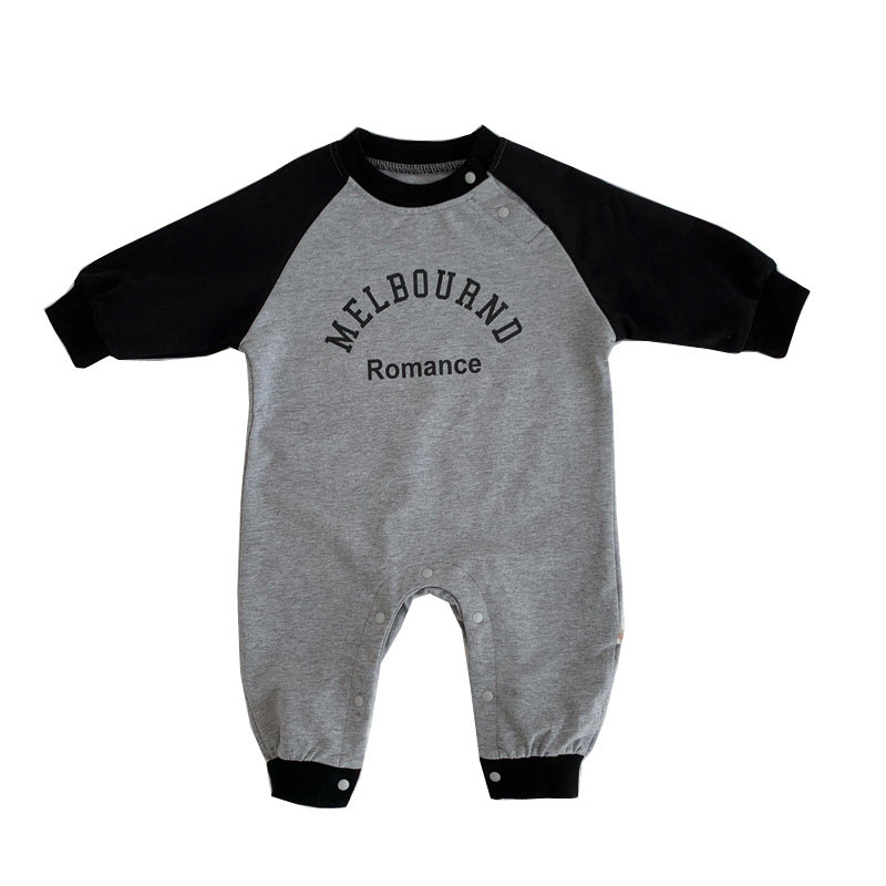 ins2025宝宝春秋装长袖套头连体衣婴幼儿潮范灰色外出卫衣长爬服