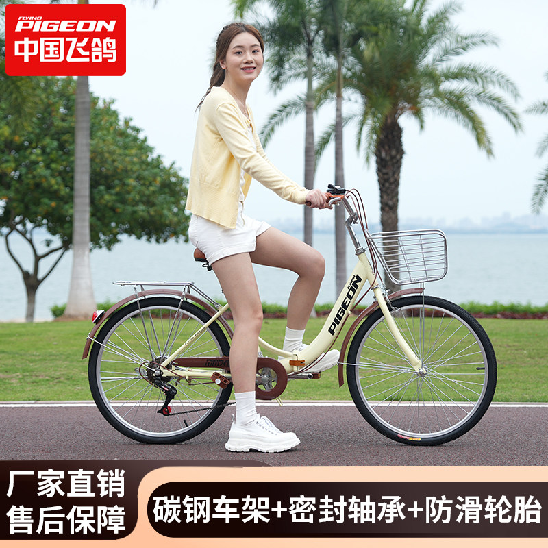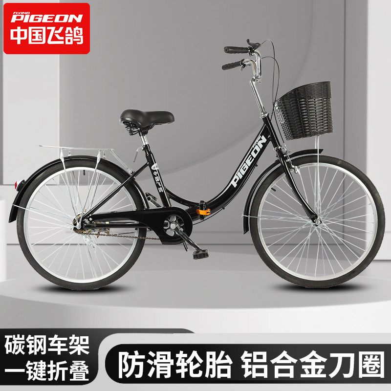 飞鸽自行车折叠式实心胎24寸26寸轻便中大学生免安装代步变速单车