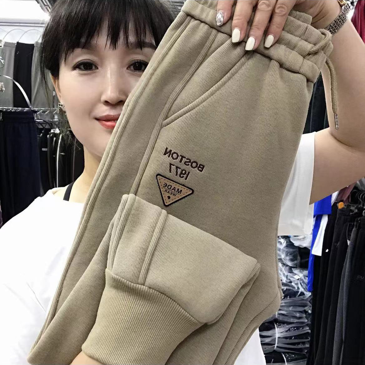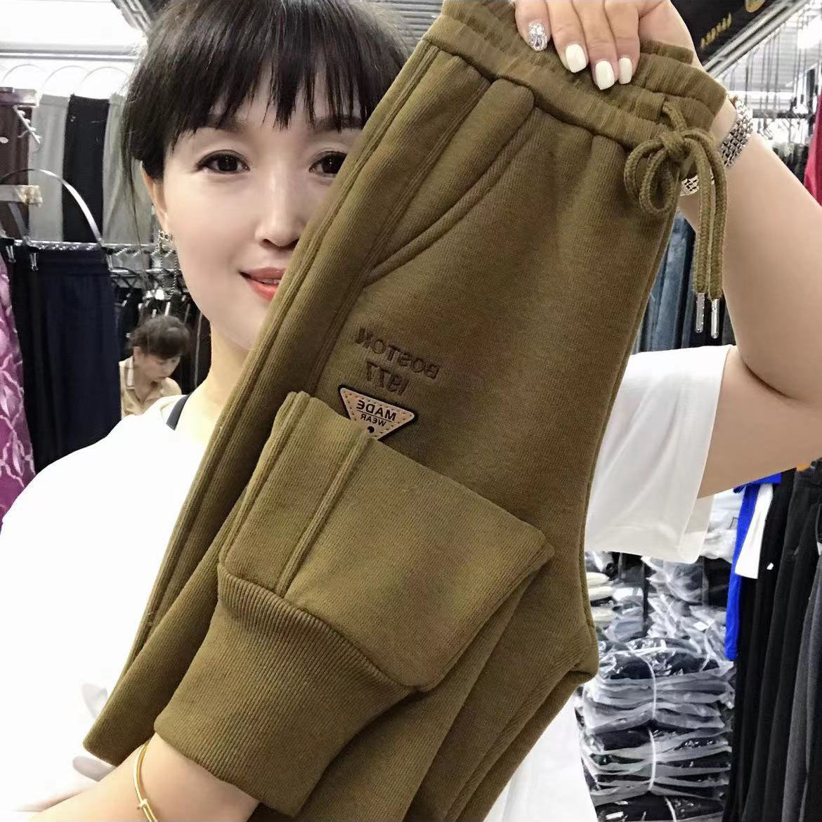 冬季新款加厚羊羔毛卫裤女显瘦百搭加绒休闲裤韩版高腰哈伦小脚裤