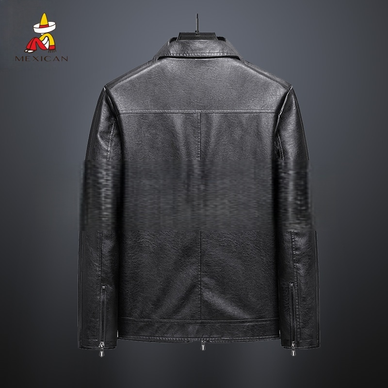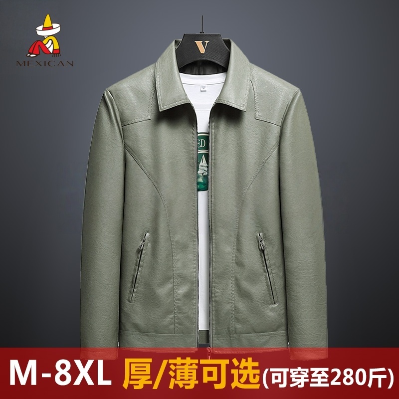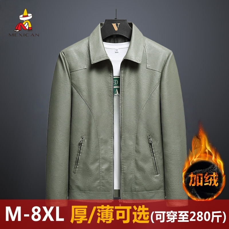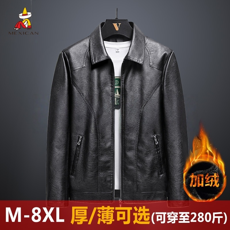 稻草人时尚潮流皮衣男秋冬加绒翻领外套大码海宁修身中青年皮夹克