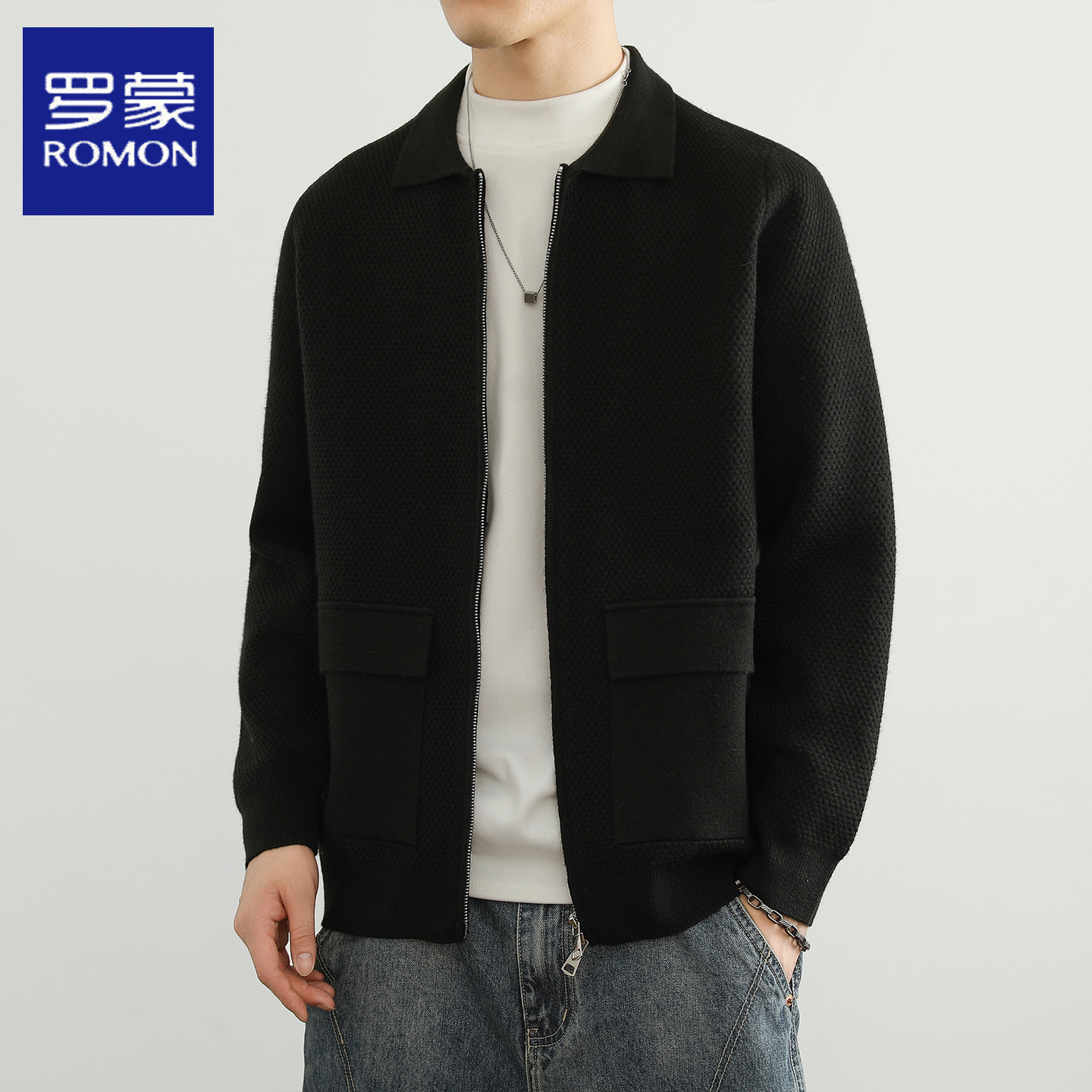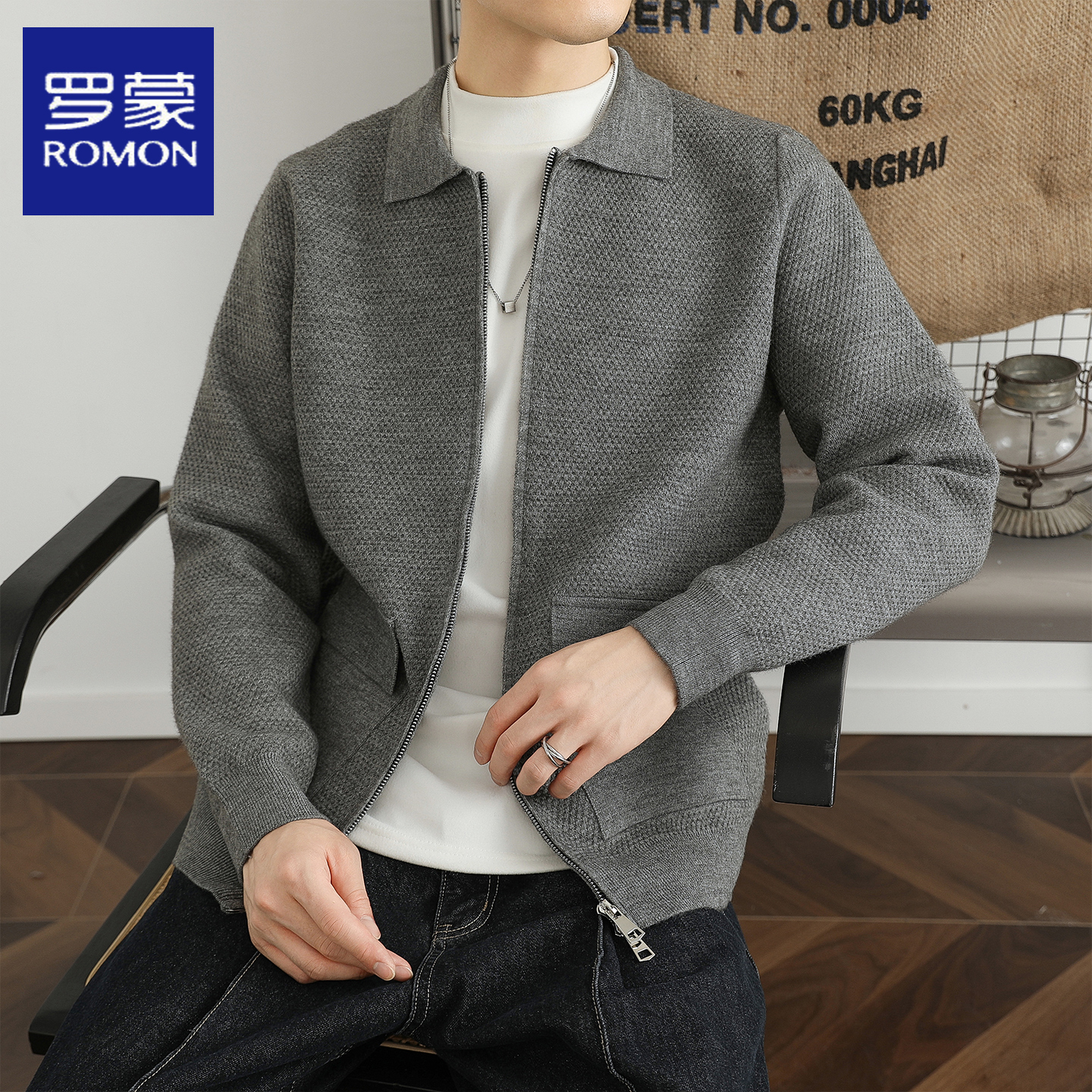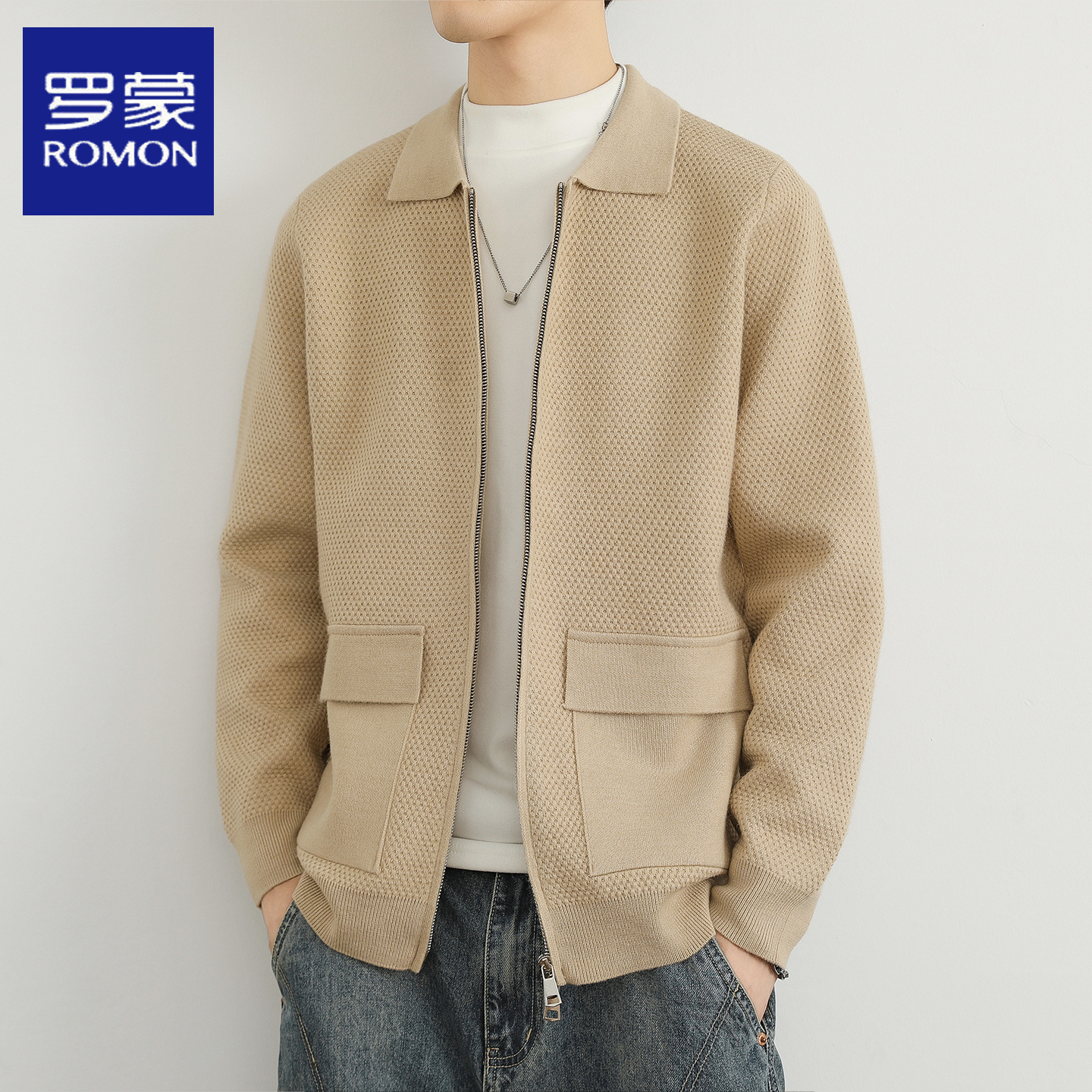 罗蒙男士针织开衫2025春秋季新款毛衣外套夹克美式休闲秋装上衣服