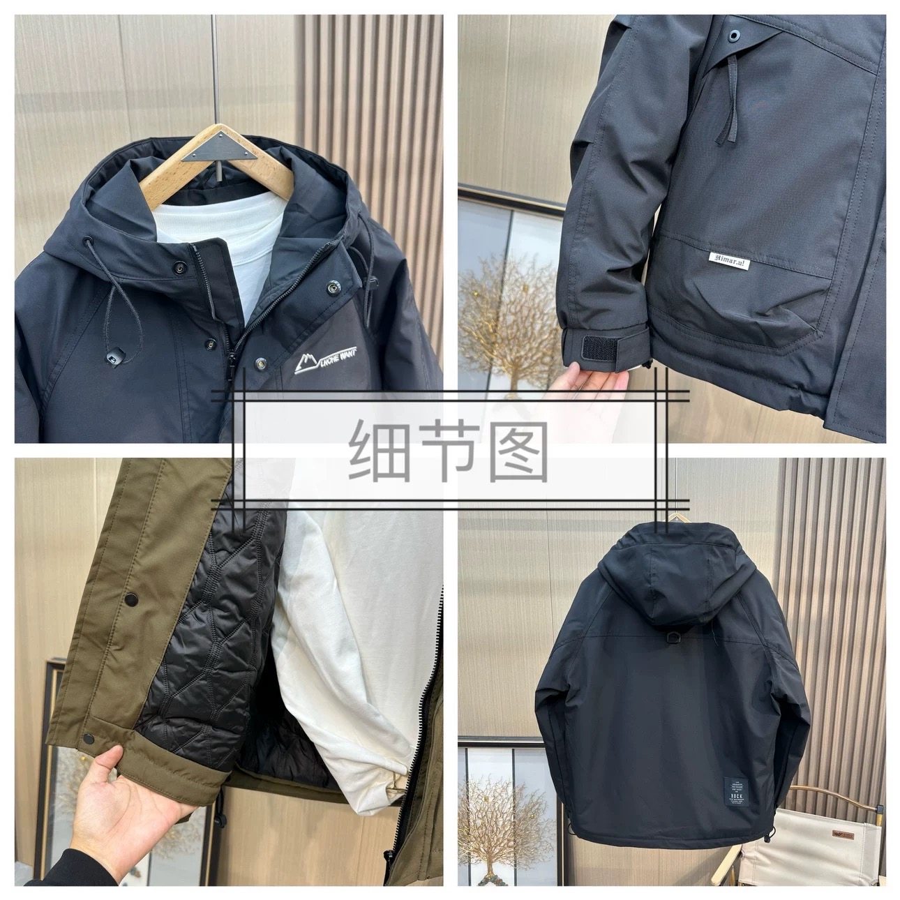 新款冬季夹棉工装外套男士百搭宽松痞帅二棉连帽冲锋衣款保暖夹克