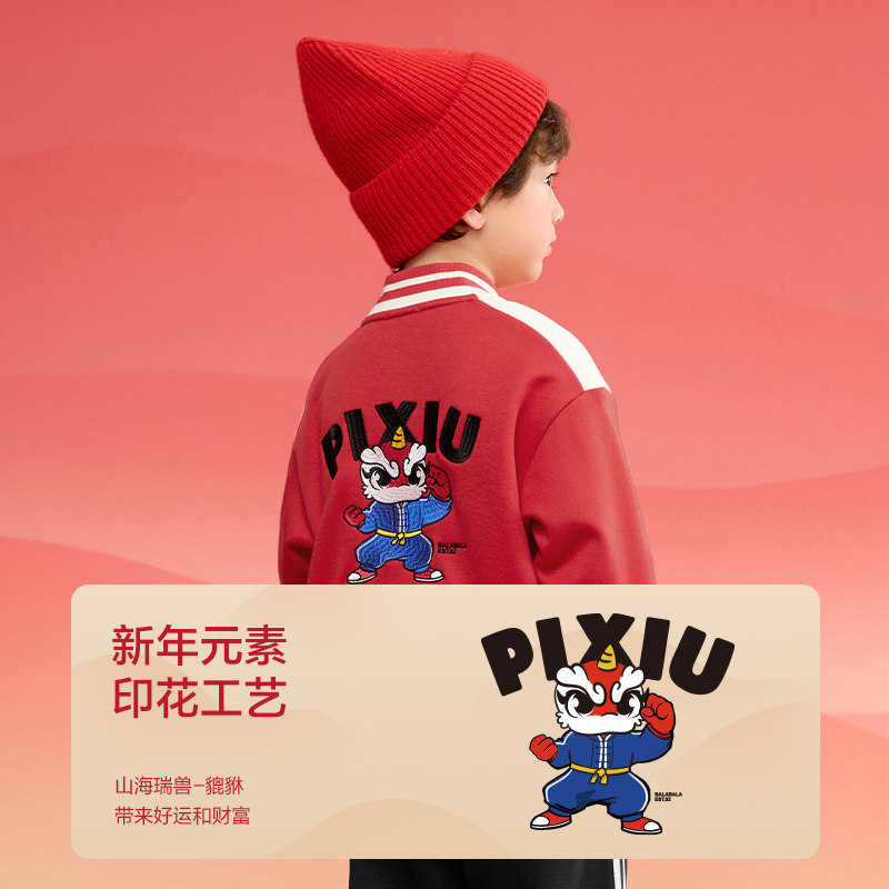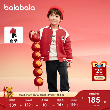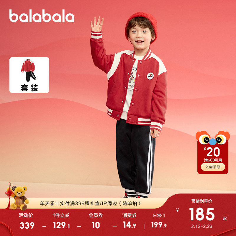 巴拉巴拉童装儿童套装男童棒球服两件套2025加绒两件套红色拜年服
