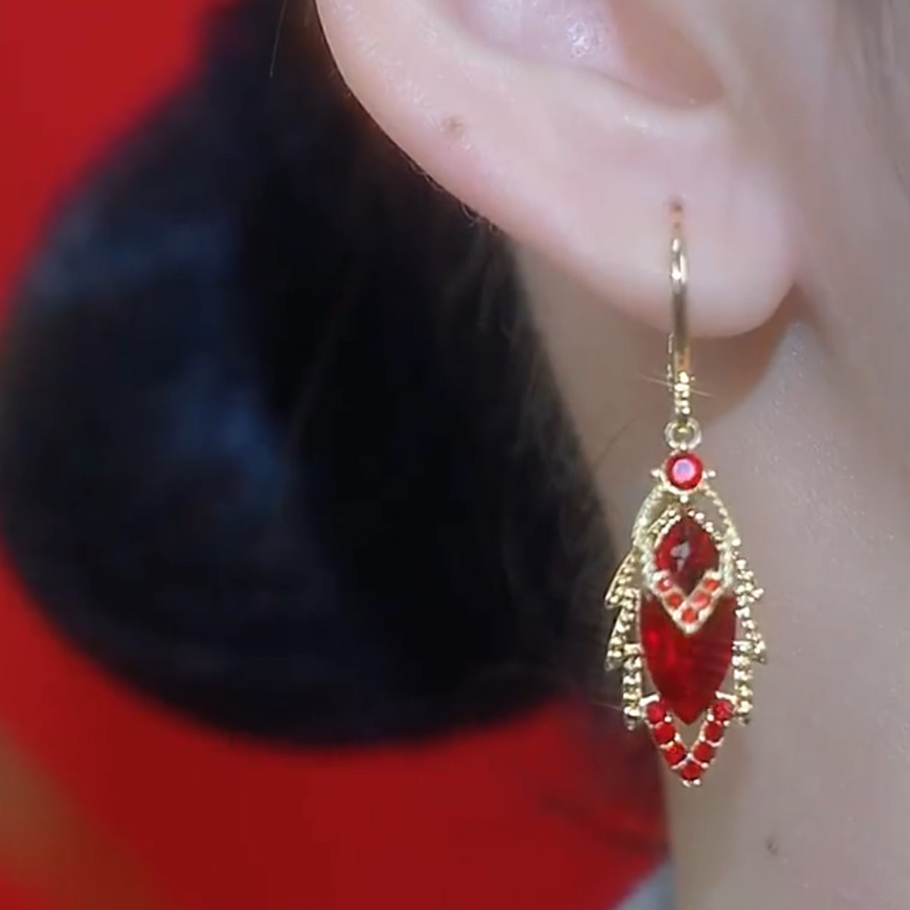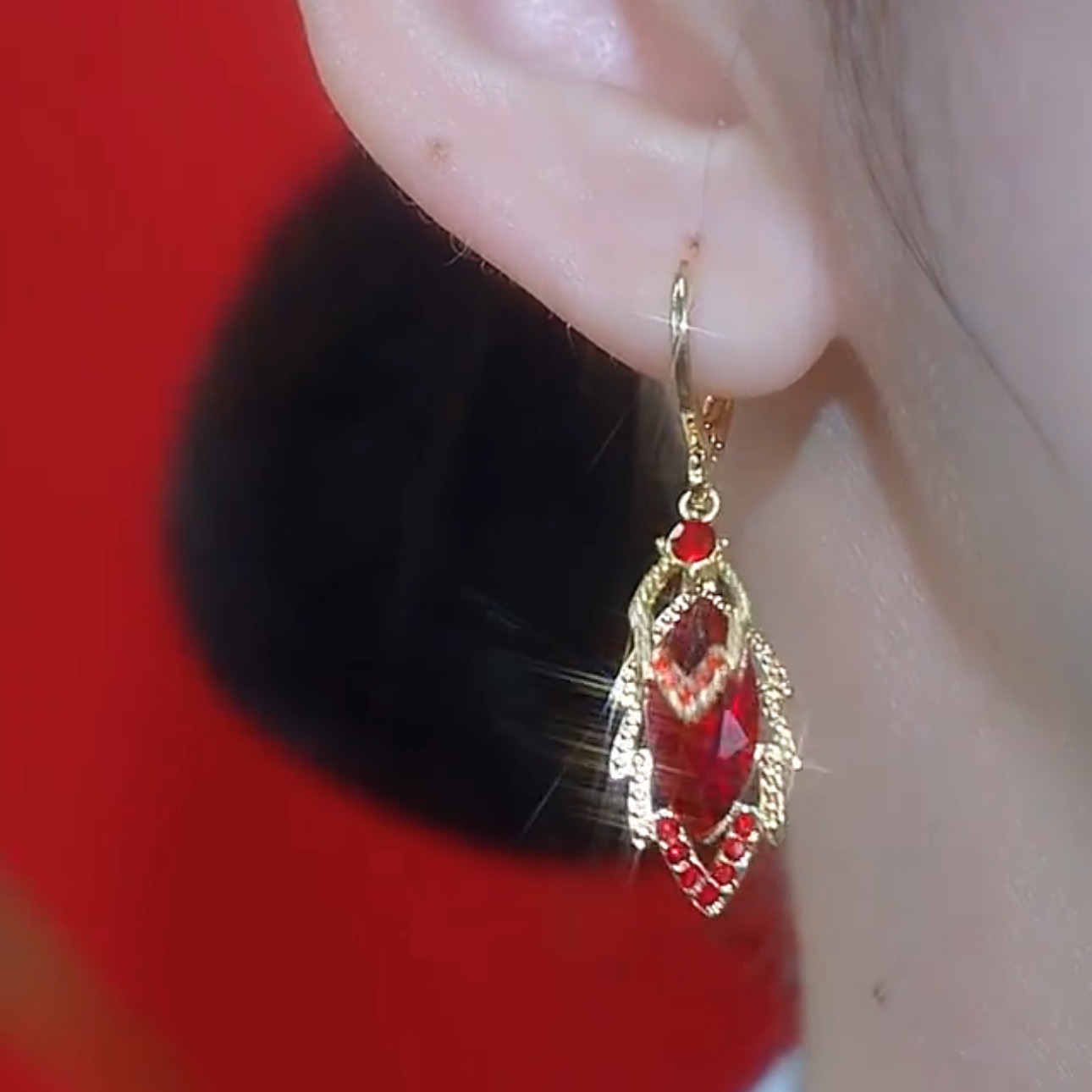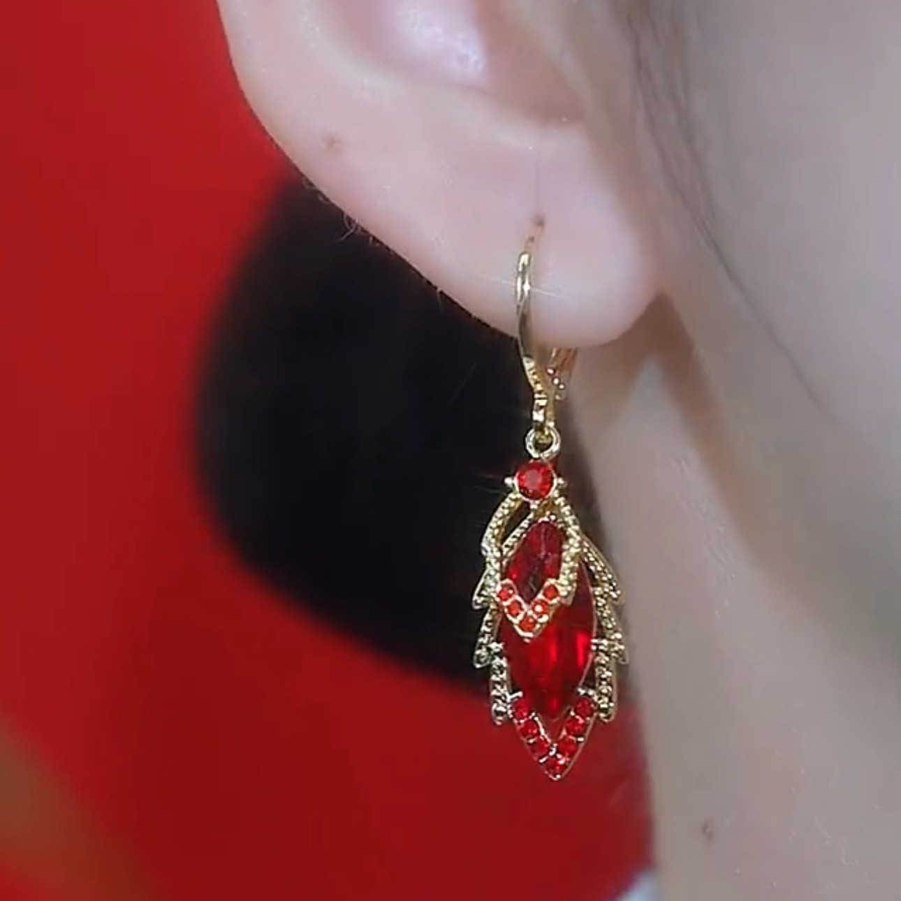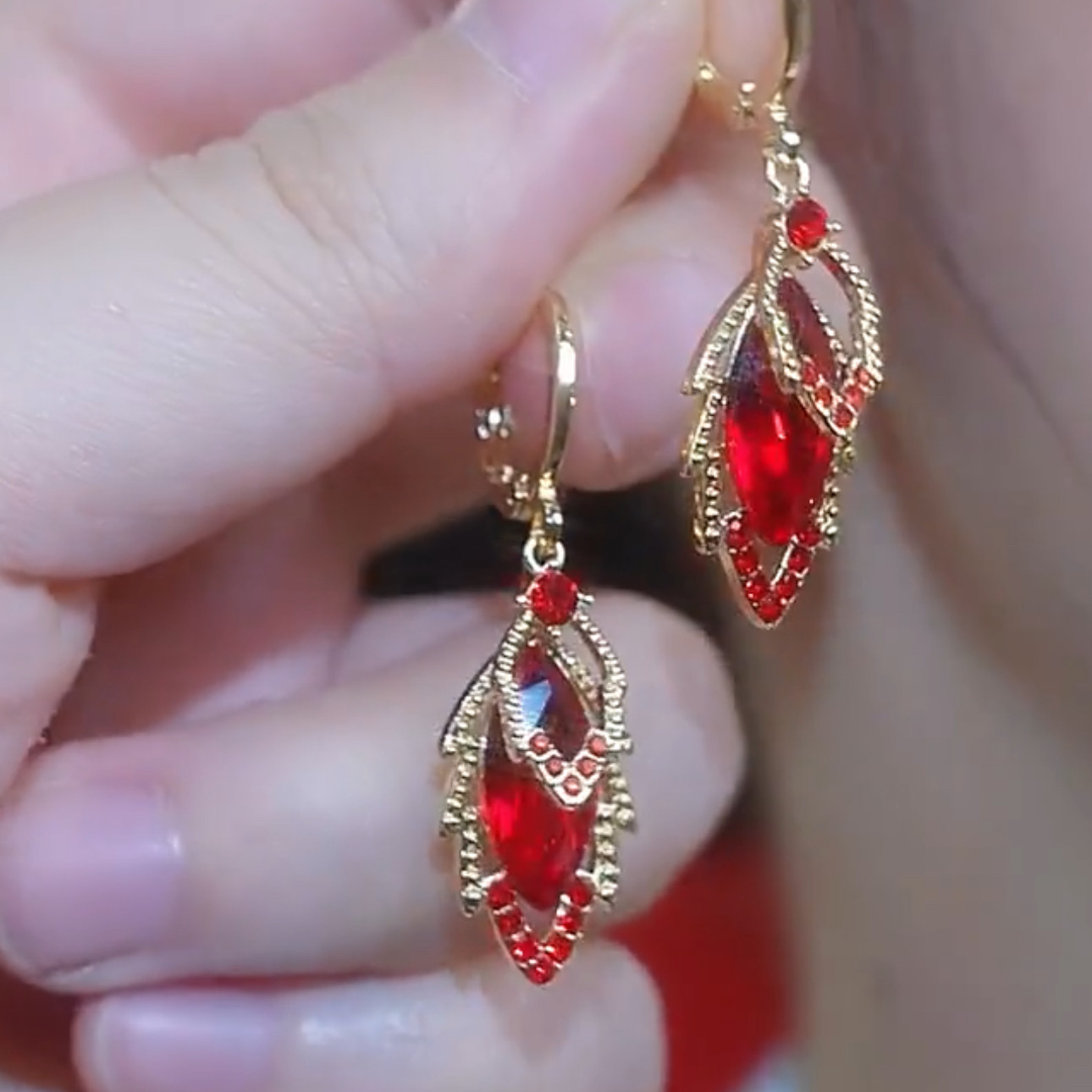 新款精致满钻红色锆石树叶耳扣耳环轻奢高级感小众气质显脸瘦耳饰