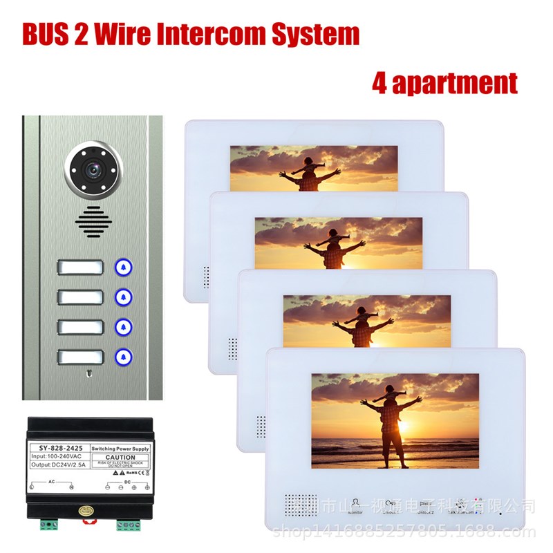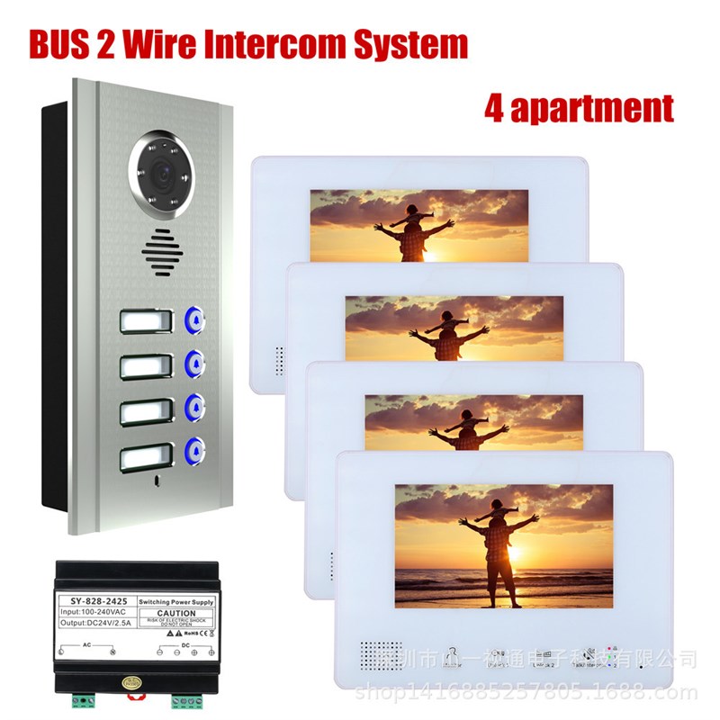 嵌入式 BUS二线制1/2/3/4户公寓直按式楼宇对讲系统可视对讲门铃