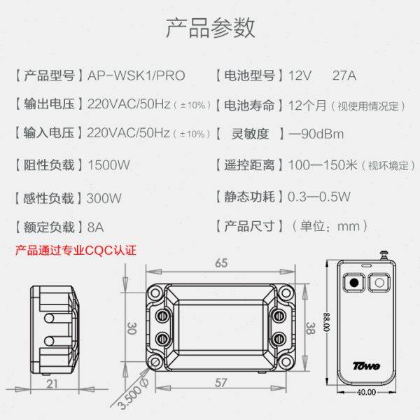 TOWE 无线灯具遥控开关 220V路/一开双控电源开关 可穿墙控制