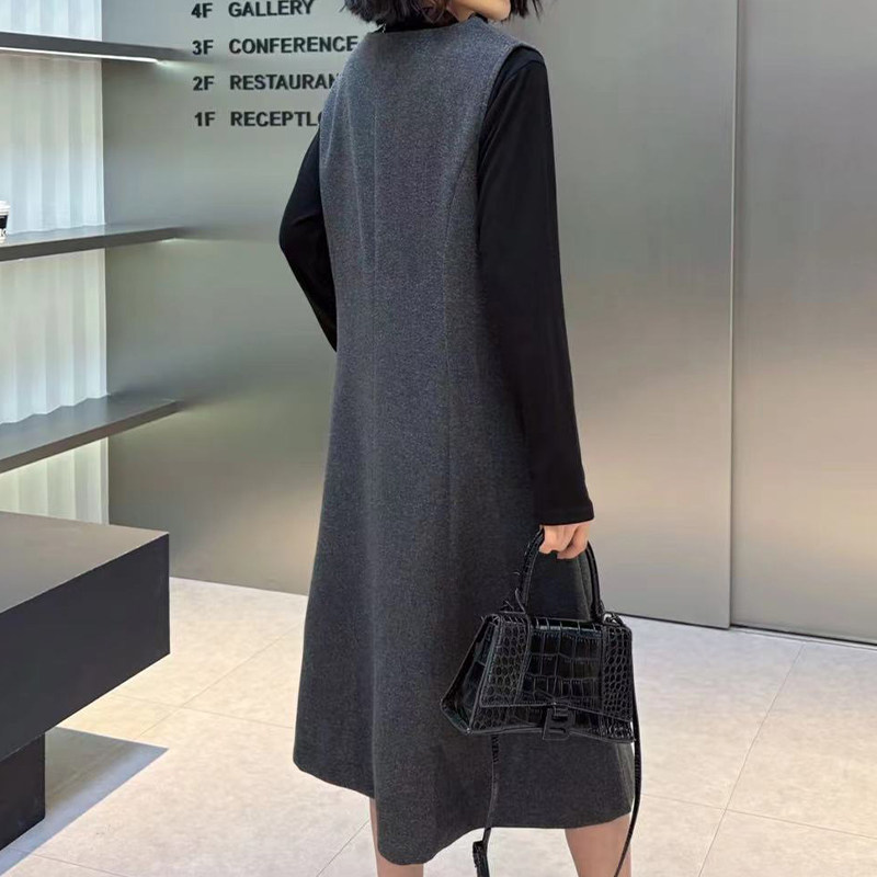 高级感简约坎肩连衣裙打底衫套装胖mm2025冬季新显瘦宽松大码女装