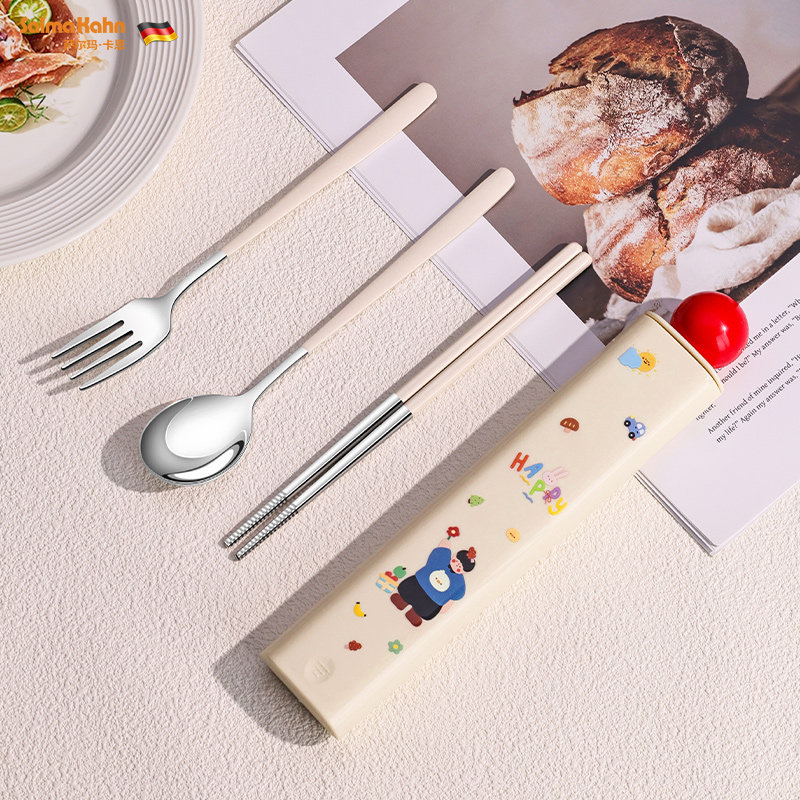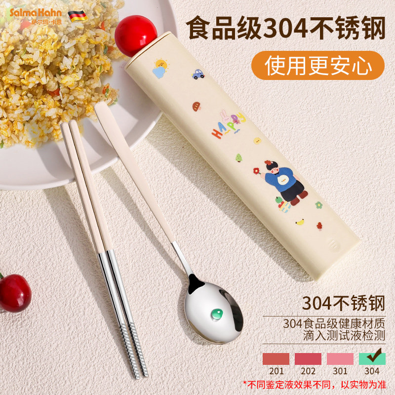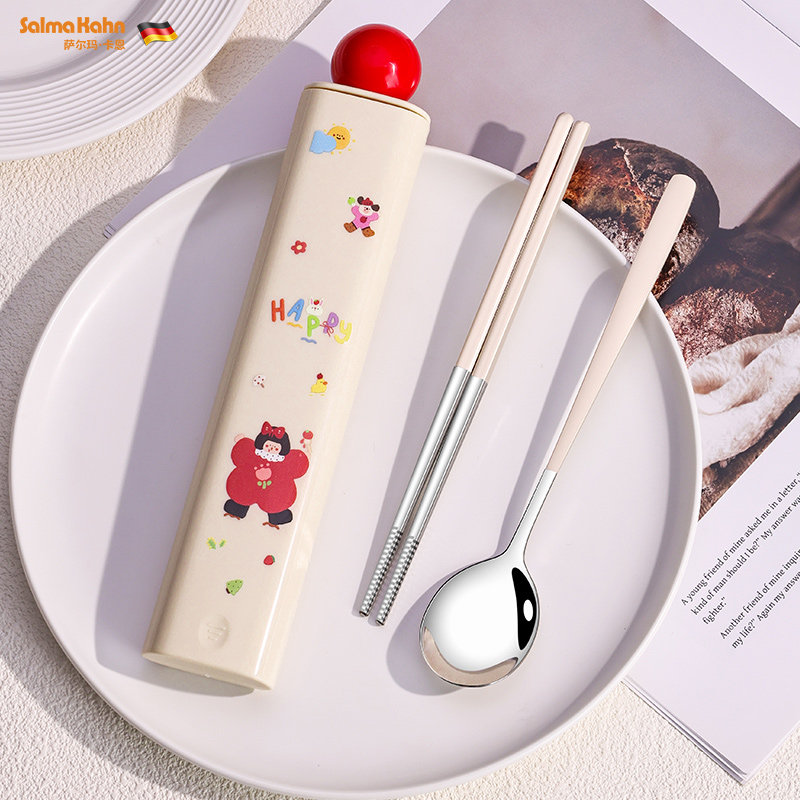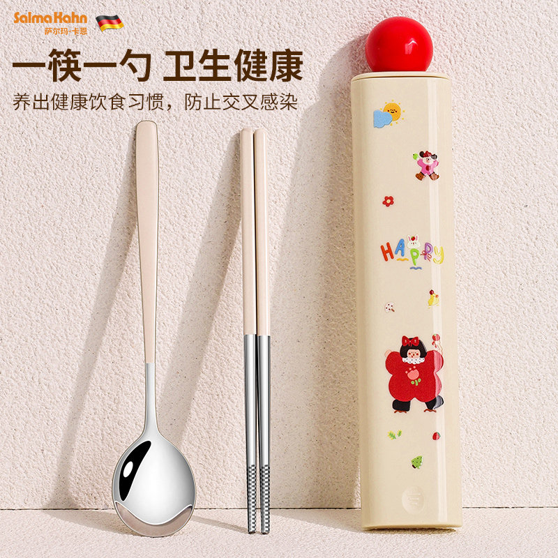 小学生便携餐具不锈钢筷勺套装儿童专用创意可爱一人用筷子收纳盒