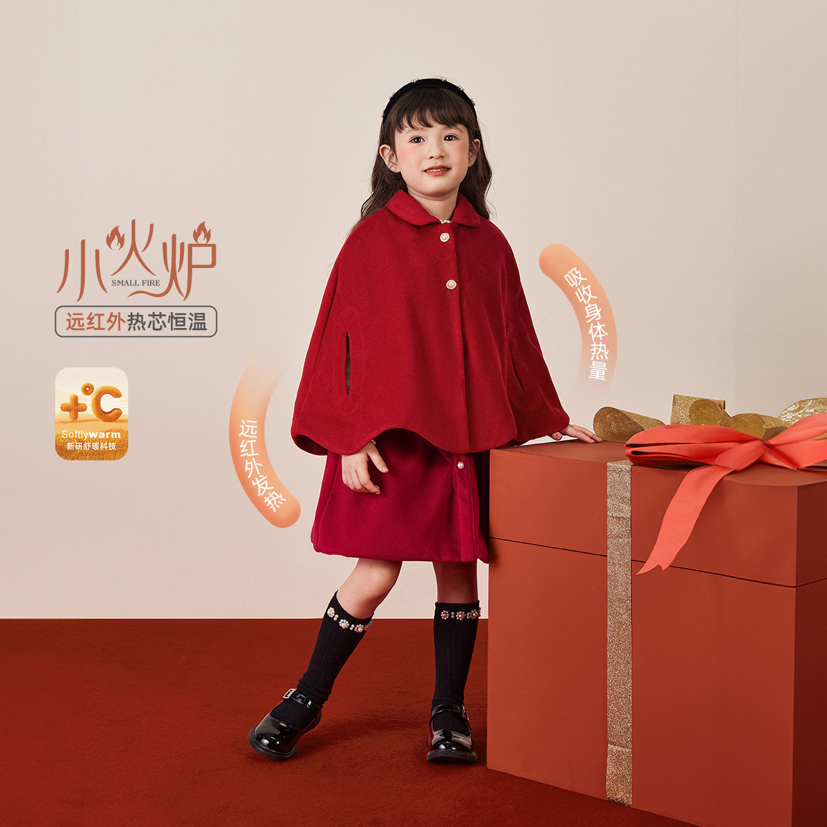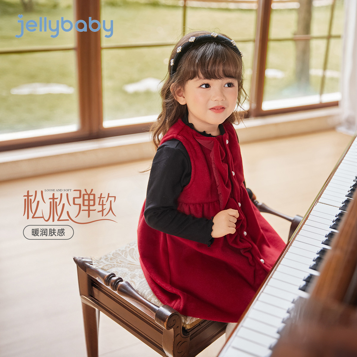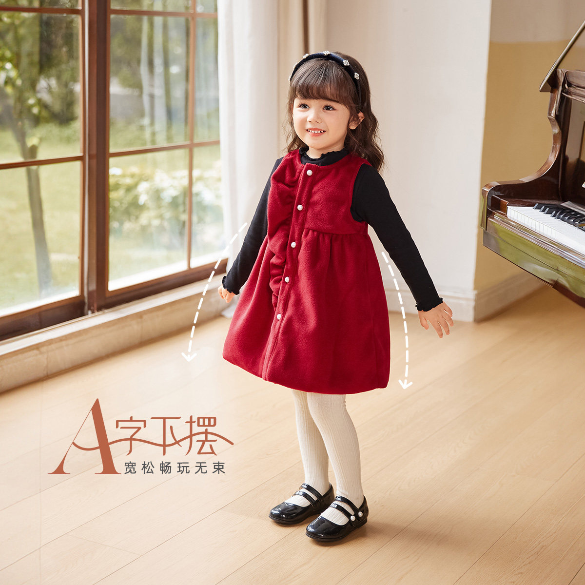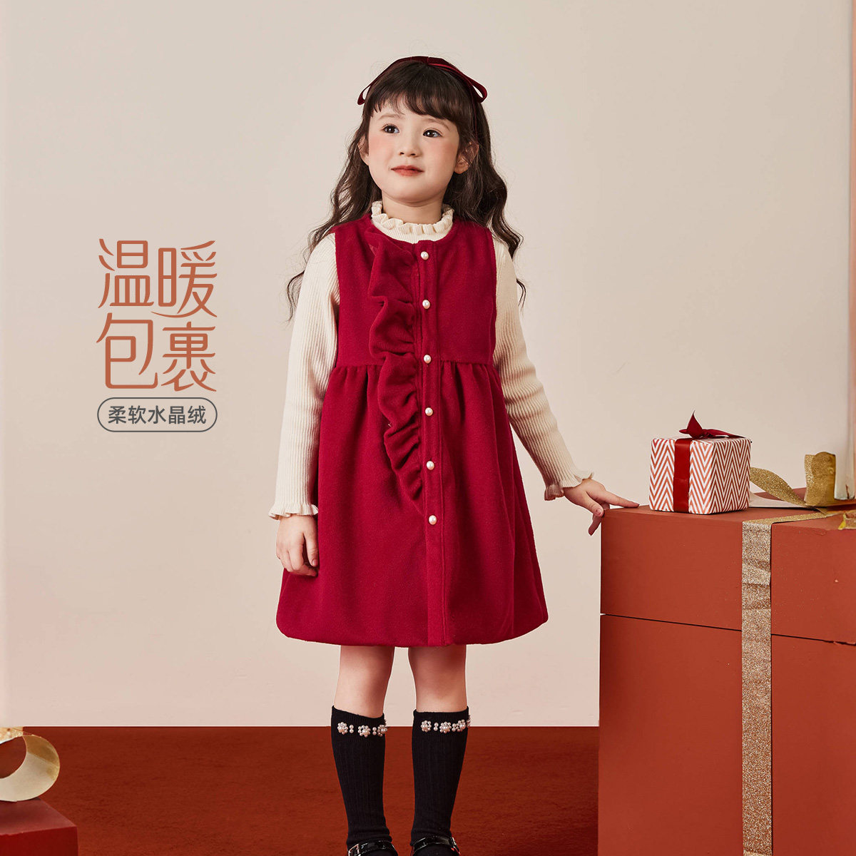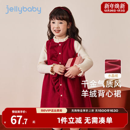 [软糯加绒]女童背心裙秋冬小童连衣裙儿童冬季红色周岁衣服女宝