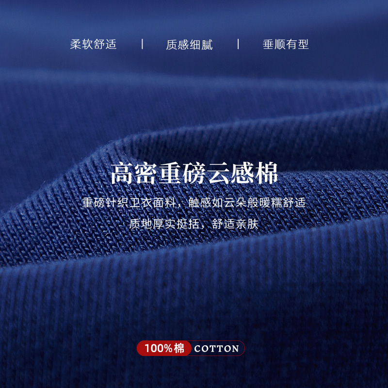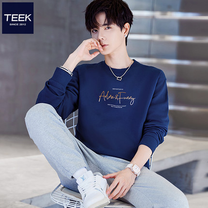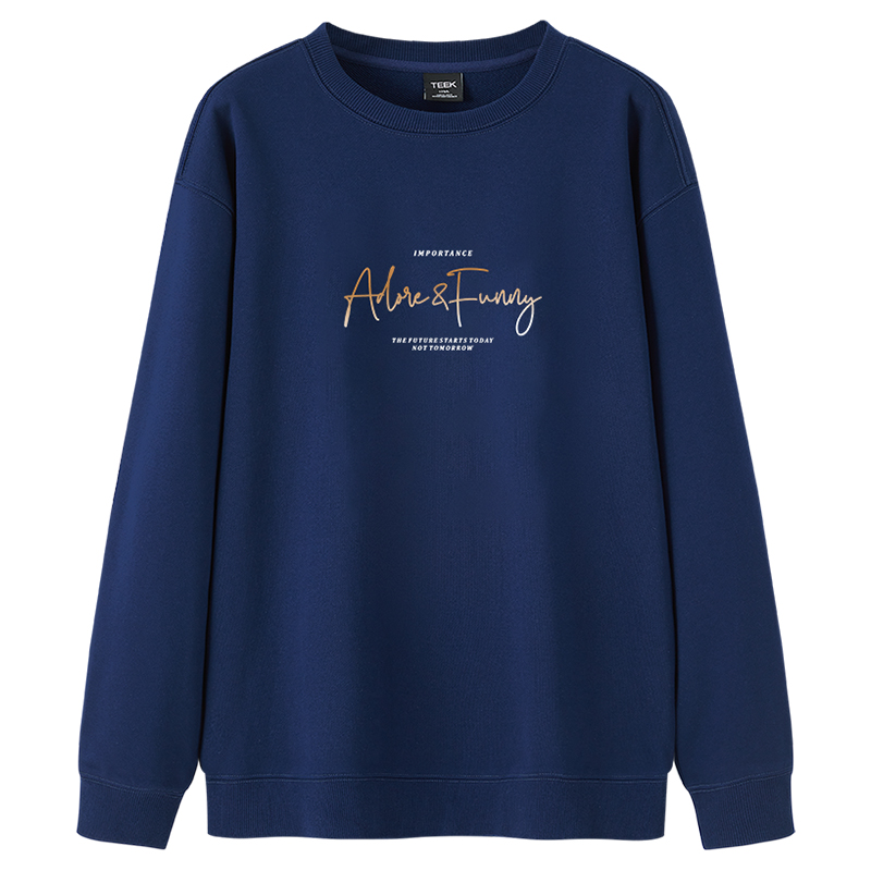 TEEK秋季男装卫衣重磅纯棉 藏青色春秋休闲字母青少年学生长袖T恤