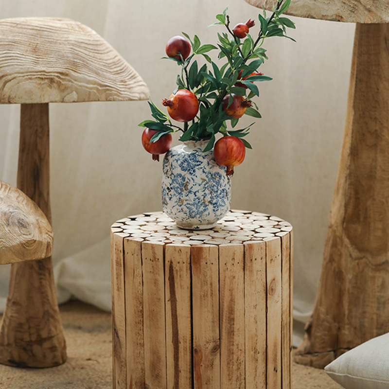 实木小圆凳网红民宿装饰客厅侘寂风软装造景庭院小凳子家用花器