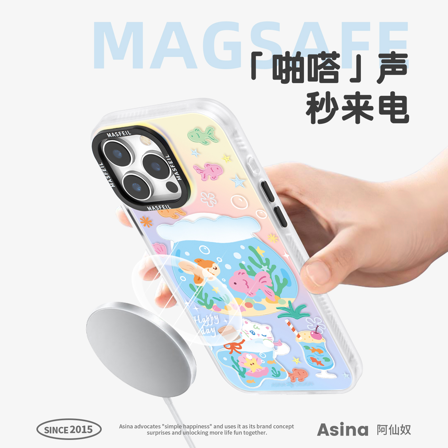 小鱼梦境适用苹果17Promax手机壳15磁吸支架iPhone16Pro保护套好看创意女plus全包可爱12网红p13新款14高级感