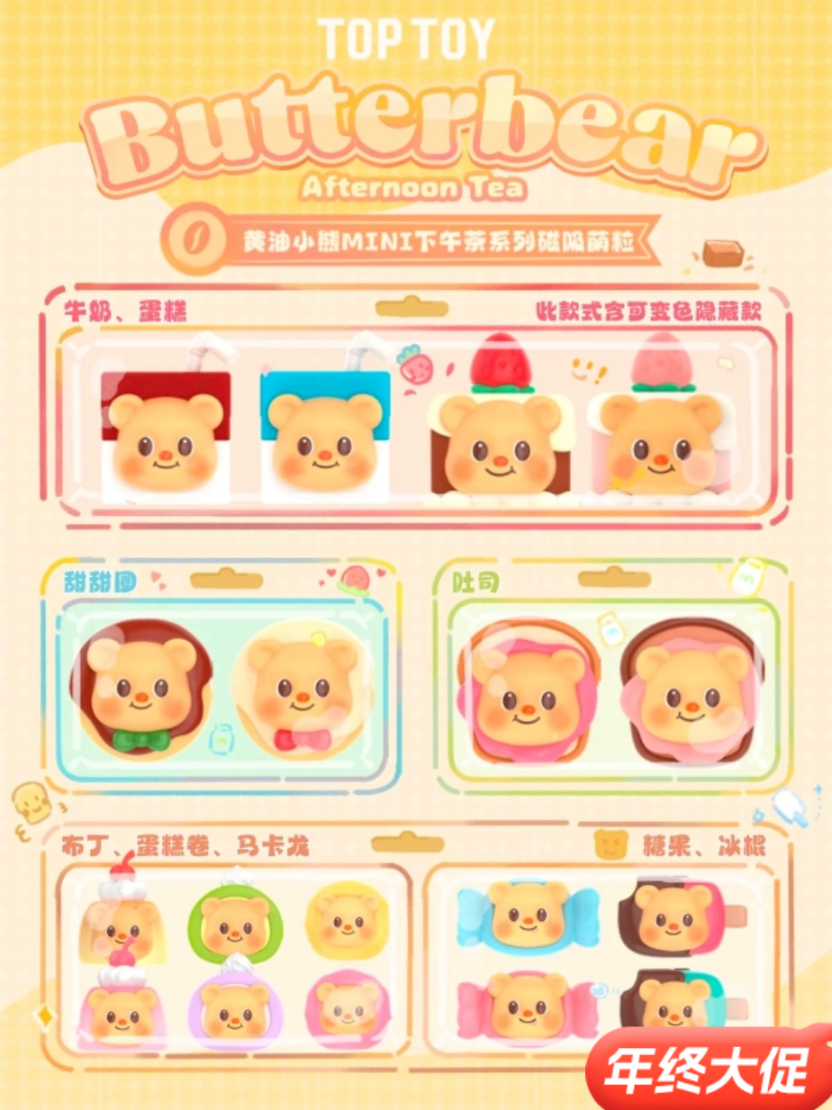 黄油小熊MINI下午茶系列磁吸手办盲袋公仔摆件可爱礼物玩女生礼物