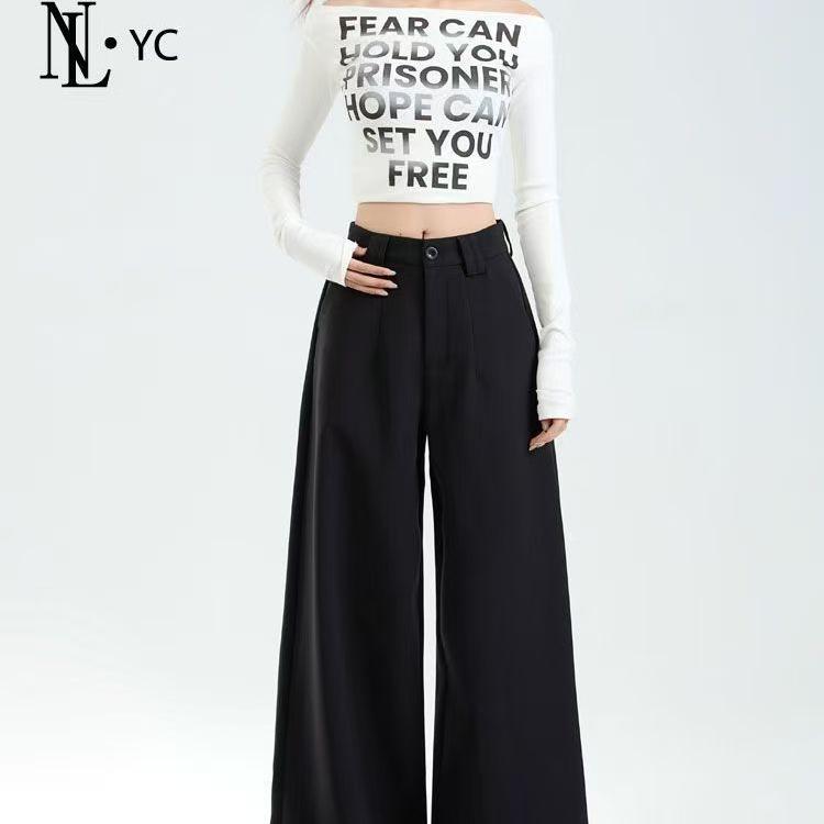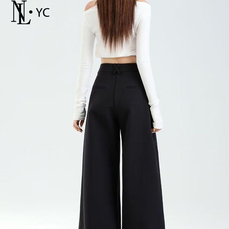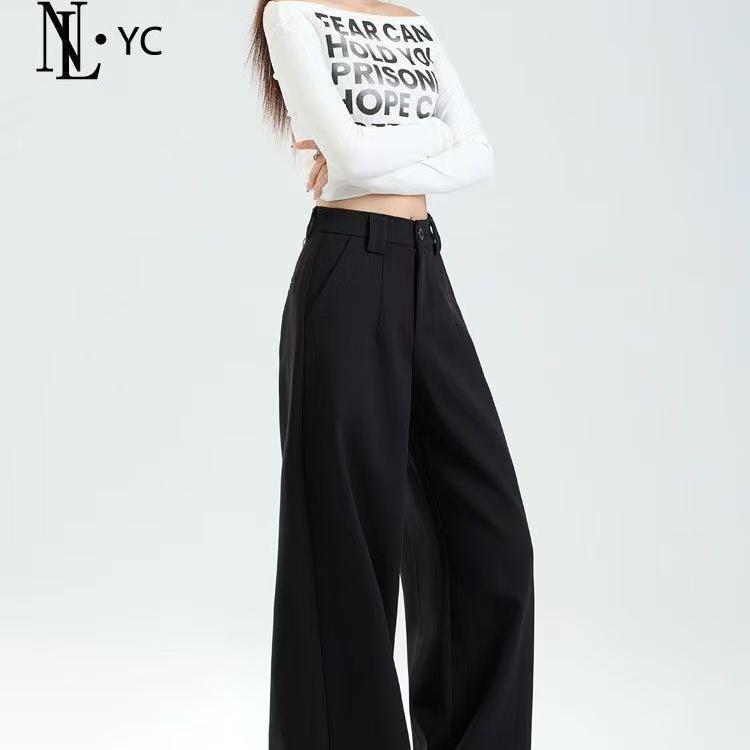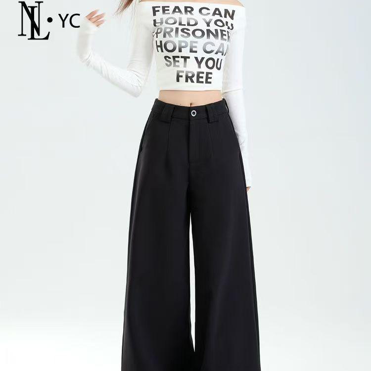 175高个子加长版黑色高腰西装阔腿裤女2025新款宽松直筒休闲裤子