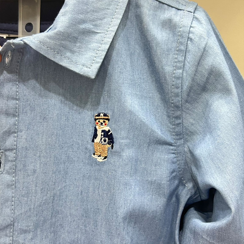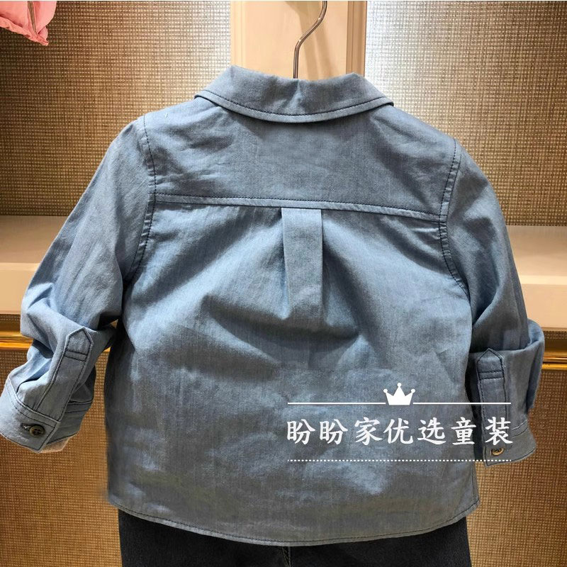 男宝宝牛仔衬衫中小童长袖打底衫小熊童装长袖衬衣