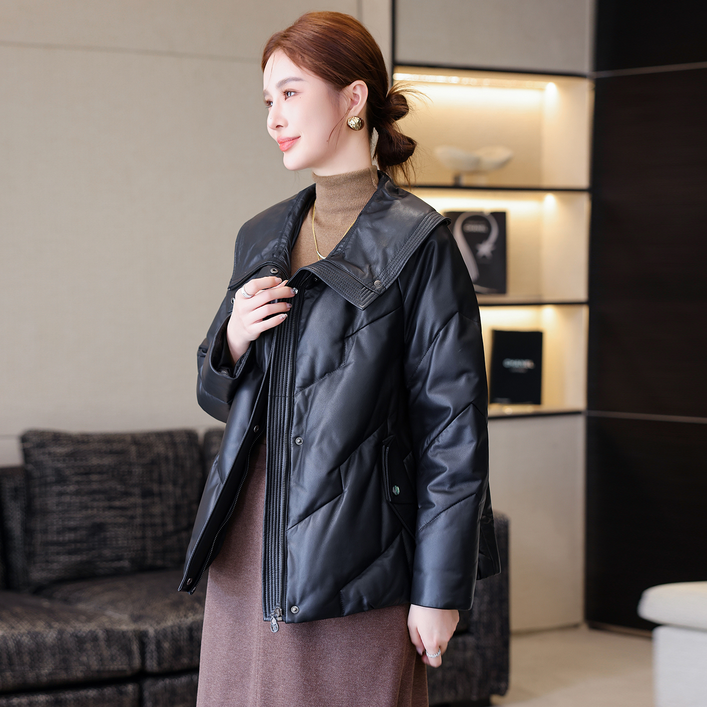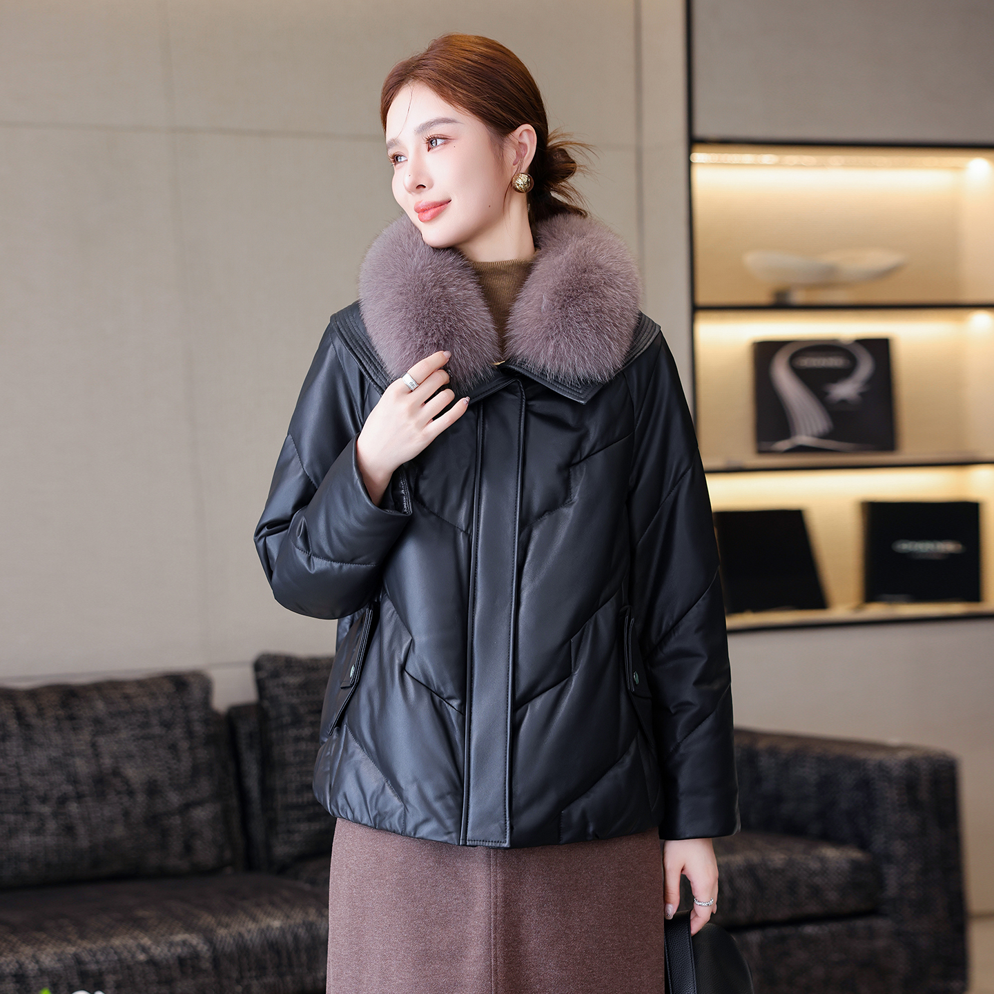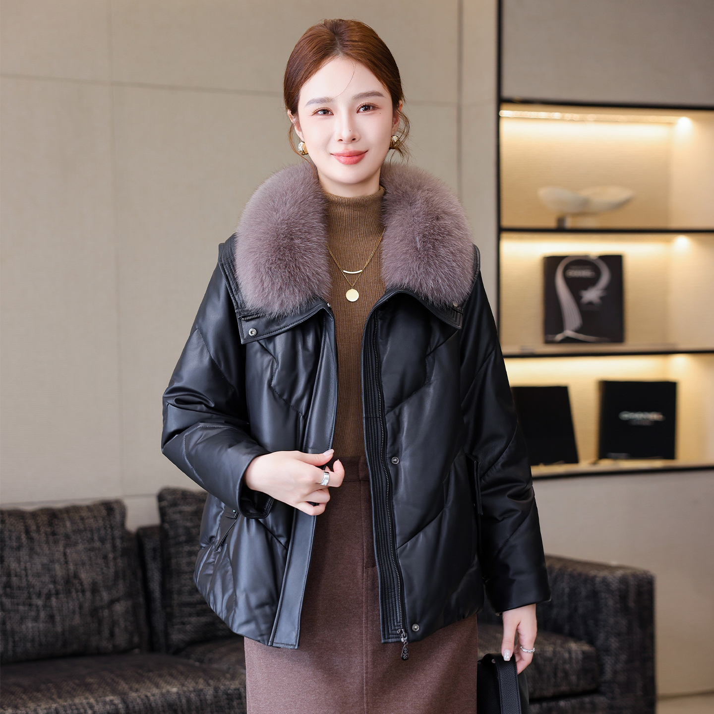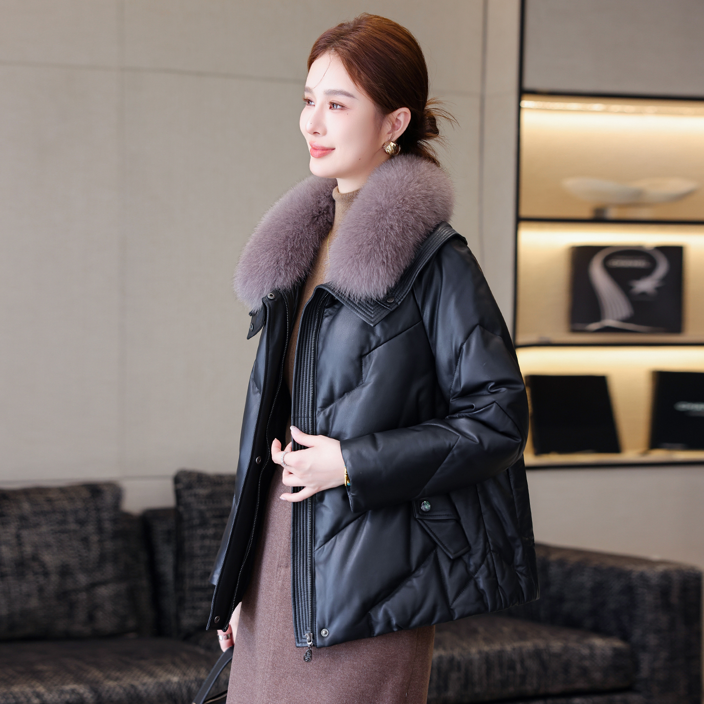真皮皮衣女2025新款冬季绵羊皮羽绒服短款狐狸毛领可拆卸皮衣外套
