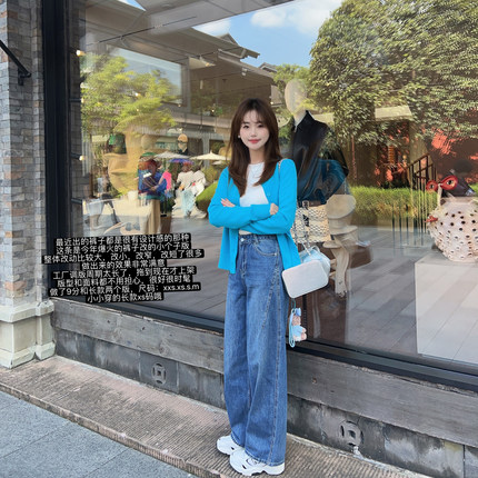 小小家 小个子小码设计感窄版牛仔裤直筒阔腿显高瘦时髦长款裤子