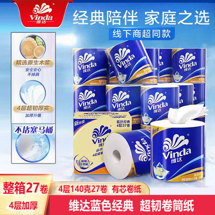 维达四层卷纸整箱27卷可溶水厕纸