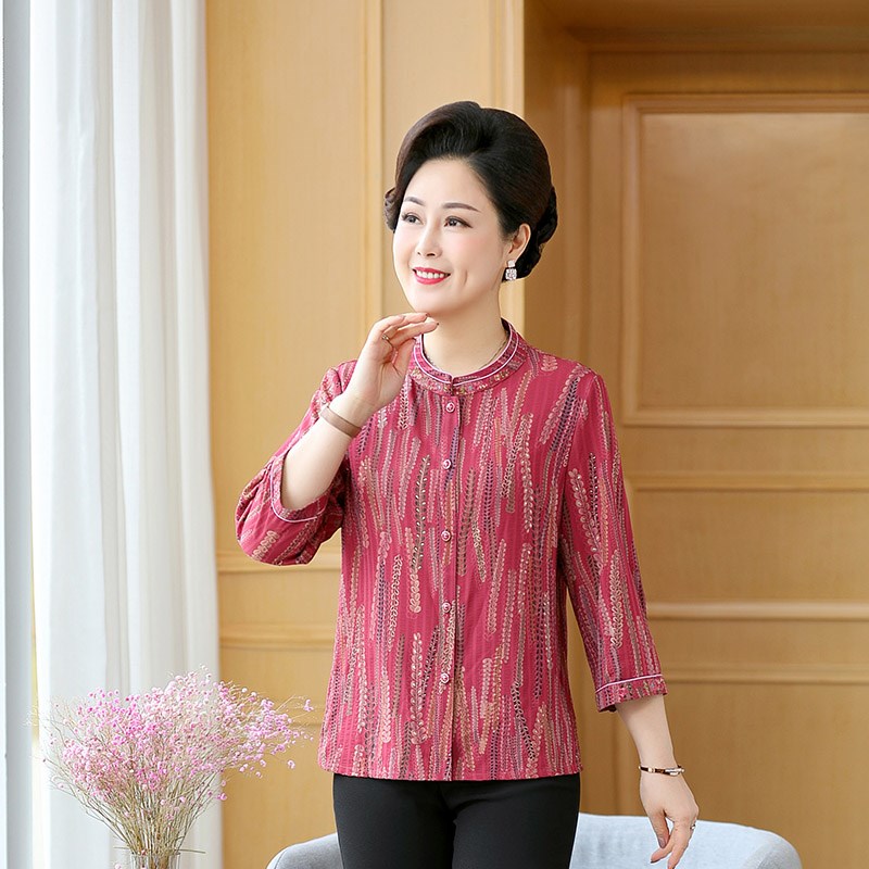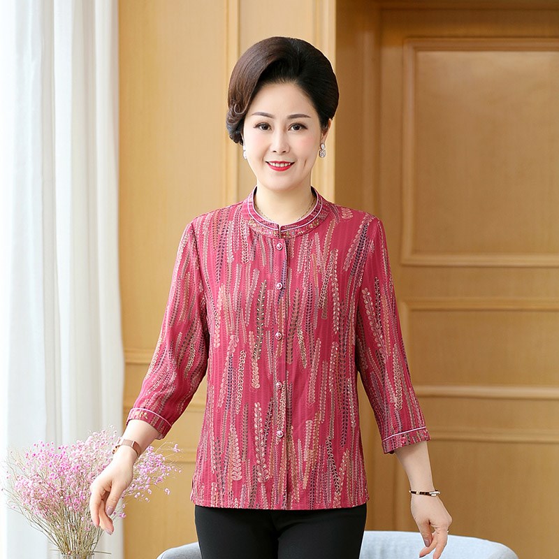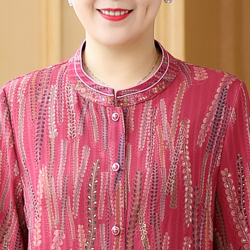 文君中老年女装50-60岁气质圆领衬衫妈妈装宽松显瘦衬衣奶奶装