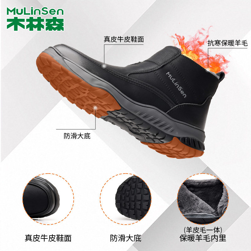 木林森2025冬季新款男士雪地靴