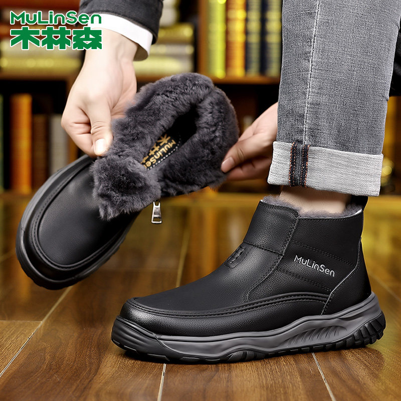 木林森雪地靴男2025冬季新款男鞋保暖鞋加绒加厚男士棉鞋棉靴子男