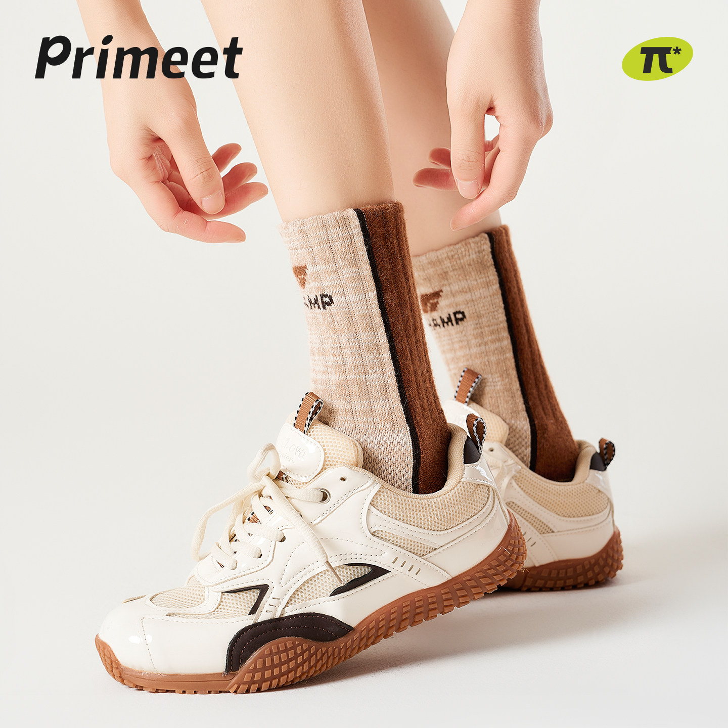 派米户外撞色条纹羊毛袜子女运动徒步登山长袜秋冬保暖加厚中筒袜