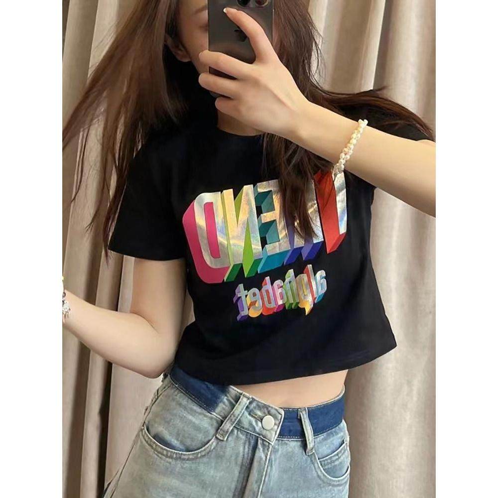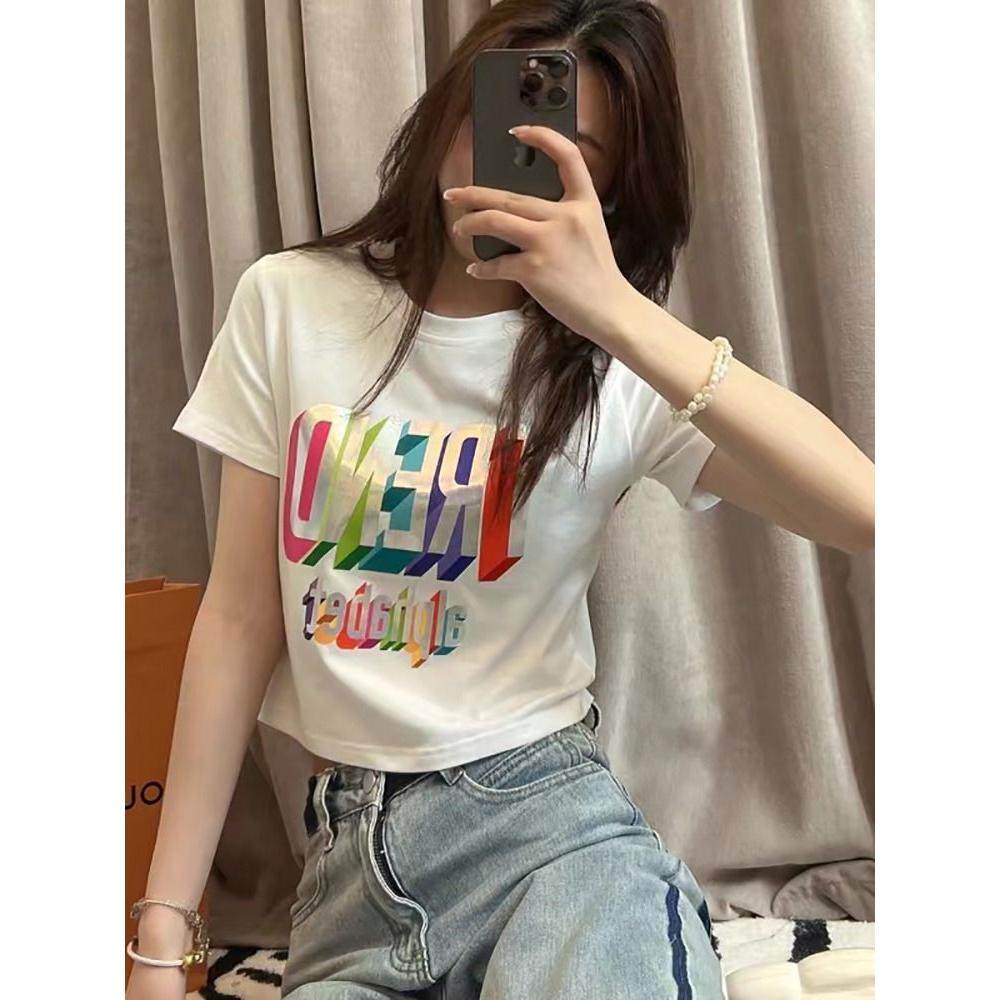 白色短袖t恤女正肩宽松夏季新款纯欲高腰露脐设计感小众短款上衣