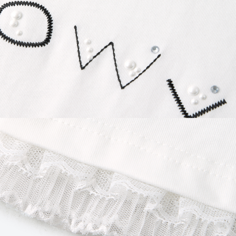 诗凡黎刺绣字母图案凉感T恤2025夏新款蕾丝拼接宽松百搭短袖上衣