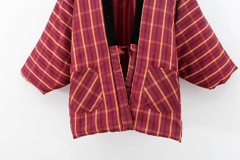 日本格子男女和风棉袄夹棉款系带
