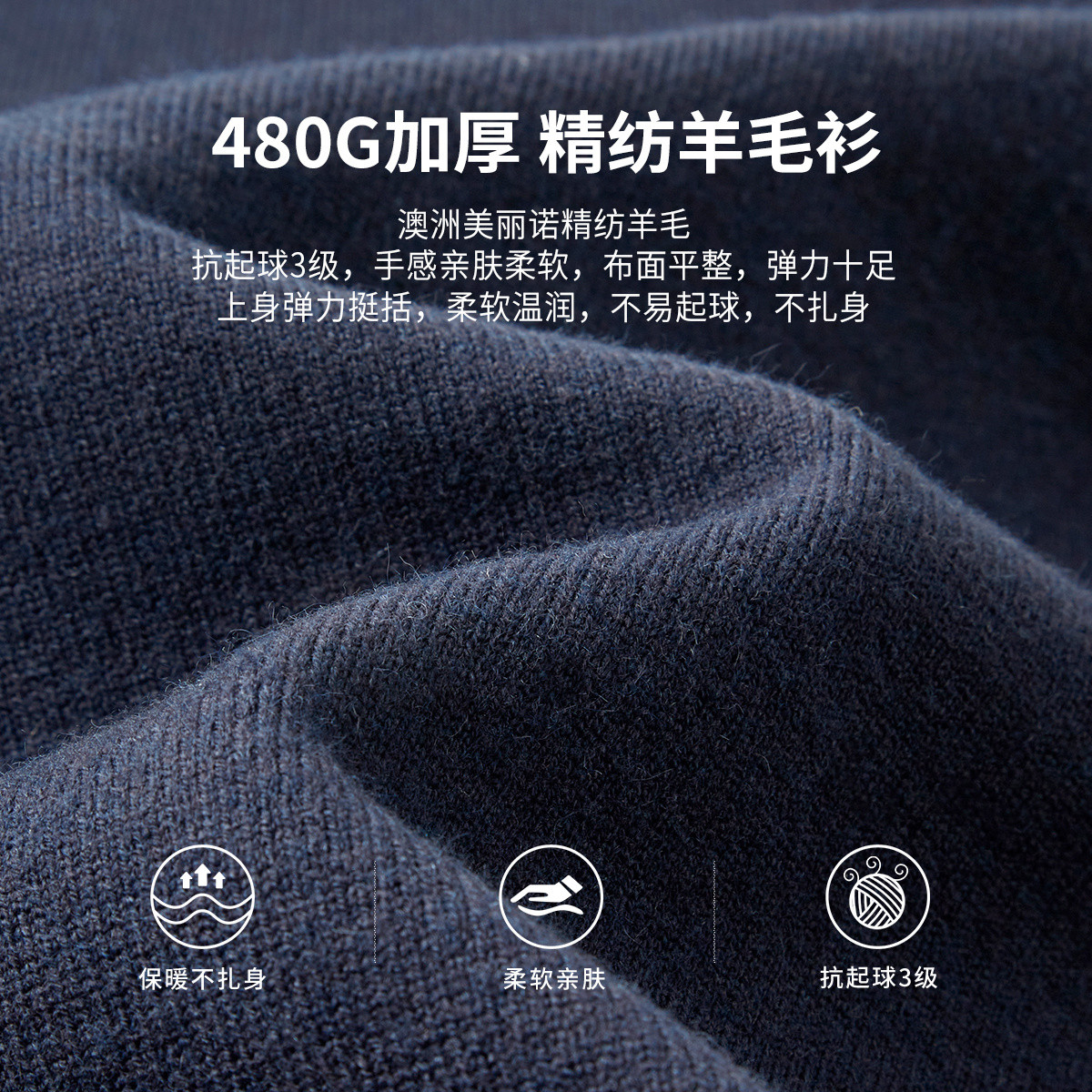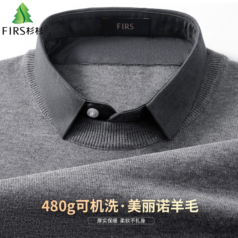 杉杉假两件秋冬新款商务含绵羊重磅加厚衬衫领长袖针织衫男士毛衣