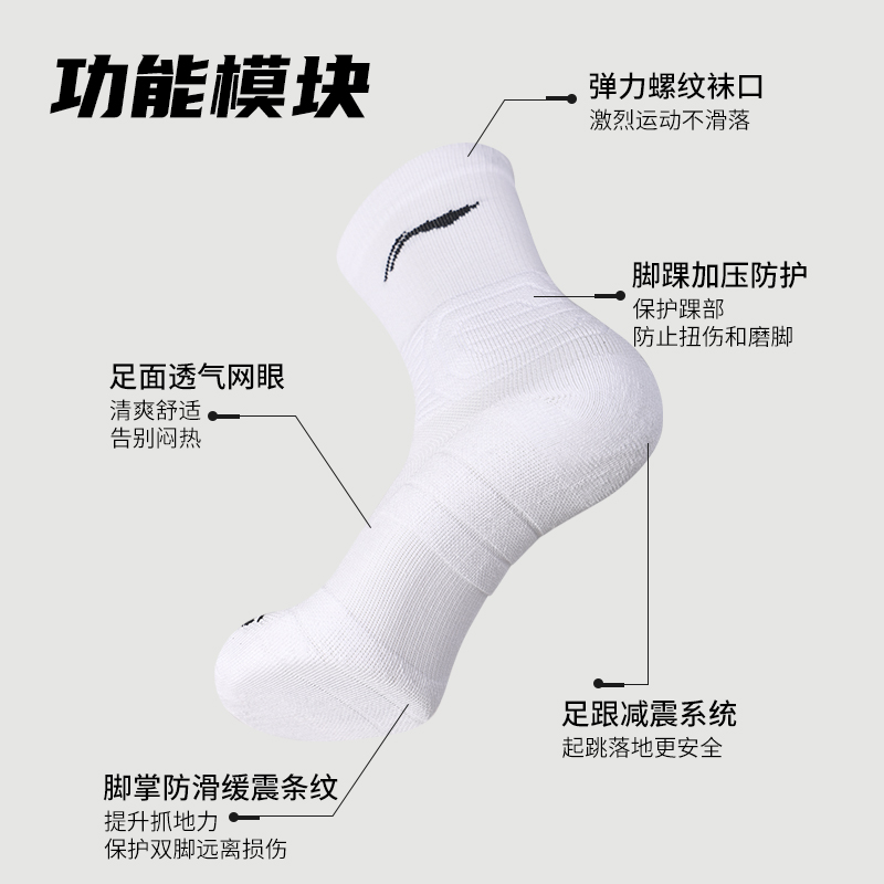 李宁篮球袜男中长筒袜青少年美式专业实战毛巾底精英跑步运动袜子