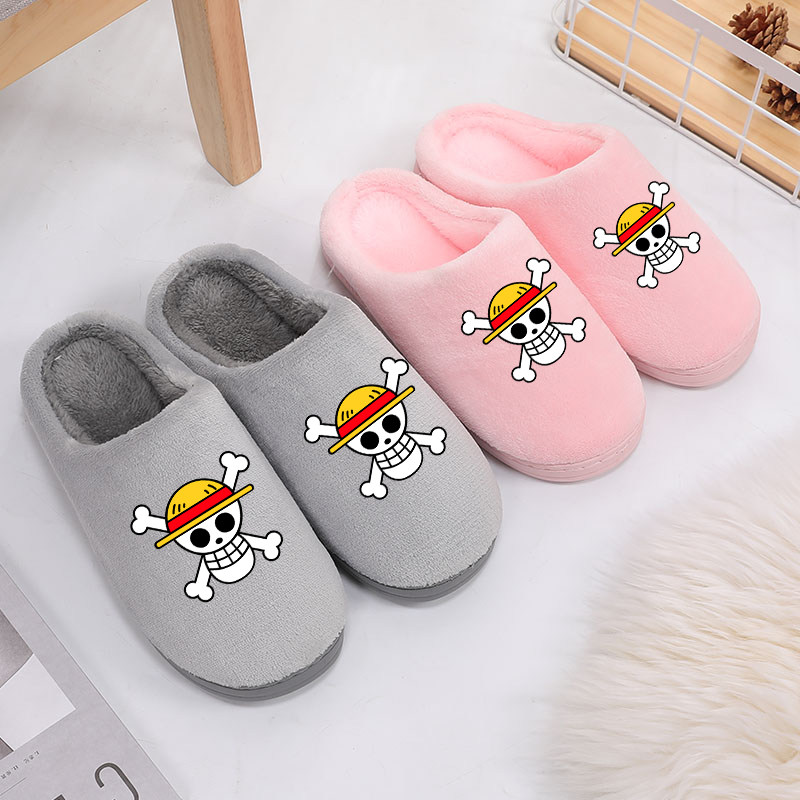 海贼王棉拖鞋女冬季情侣家居家室内厚底防滑毛绒保暖动漫周边鞋男