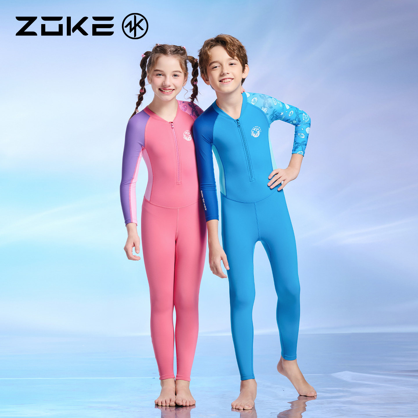 洲克儿童泳衣连体长袖长裤游泳保暖防晒zoke女孩温泉男童度假泳衣