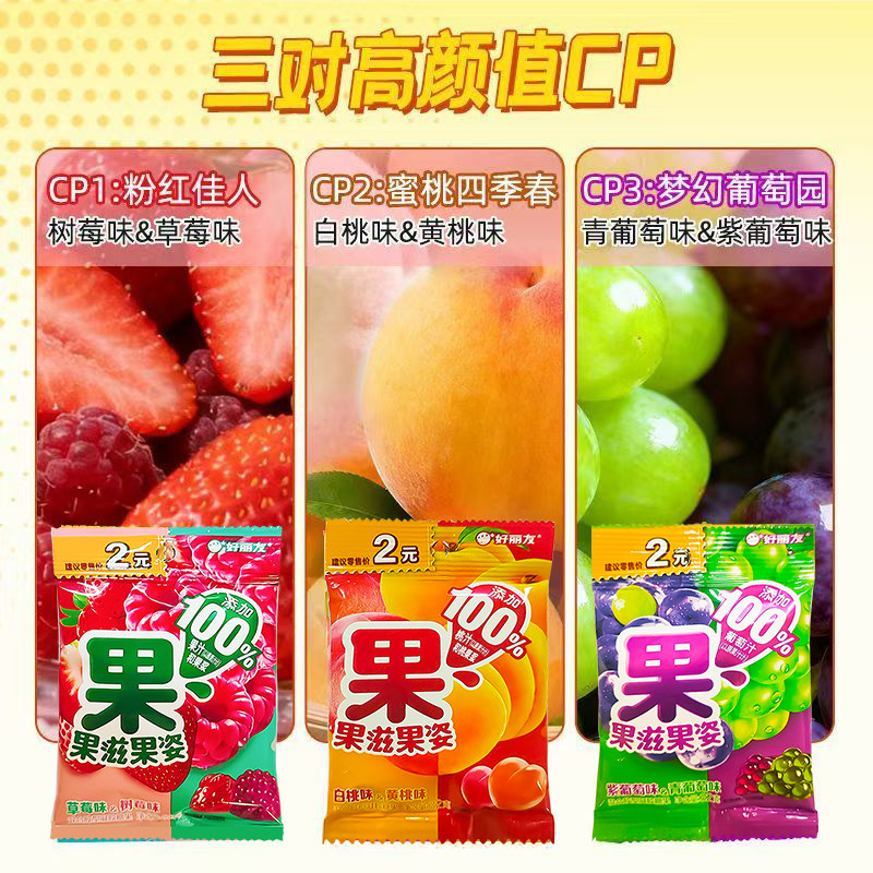 好丽友新品】果滋果姿32g葡萄桃子草莓树莓味软糖橡皮糖儿童零食