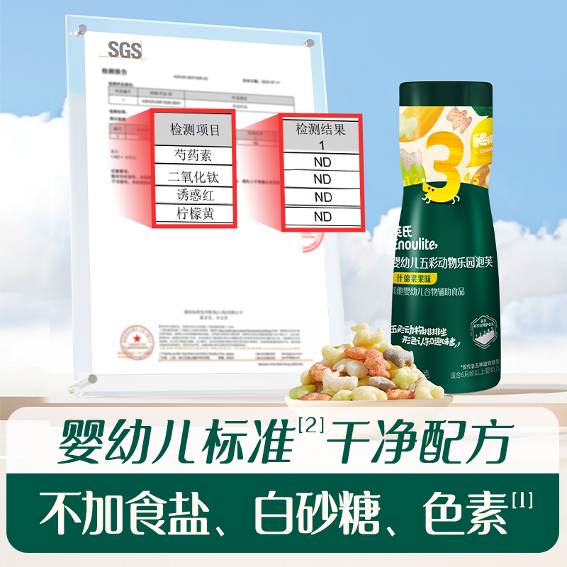 英氏五彩泡芙趣味动物造型宝宝零食无添加白糖泡芙条 6月婴儿辅食