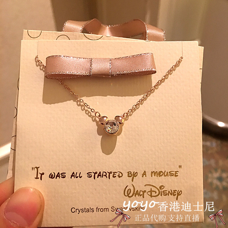 香港迪士尼乐园 米奇 卡通蛇骨吊坠项链 施华洛元素镀金 水晶耳钉