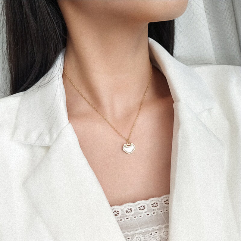轻奢18K金平安锁项链 女如意长命锁黄金钻石纯银贝壳毛衣锁骨链潮