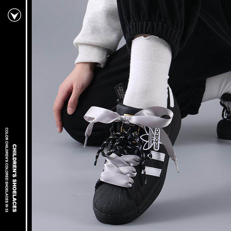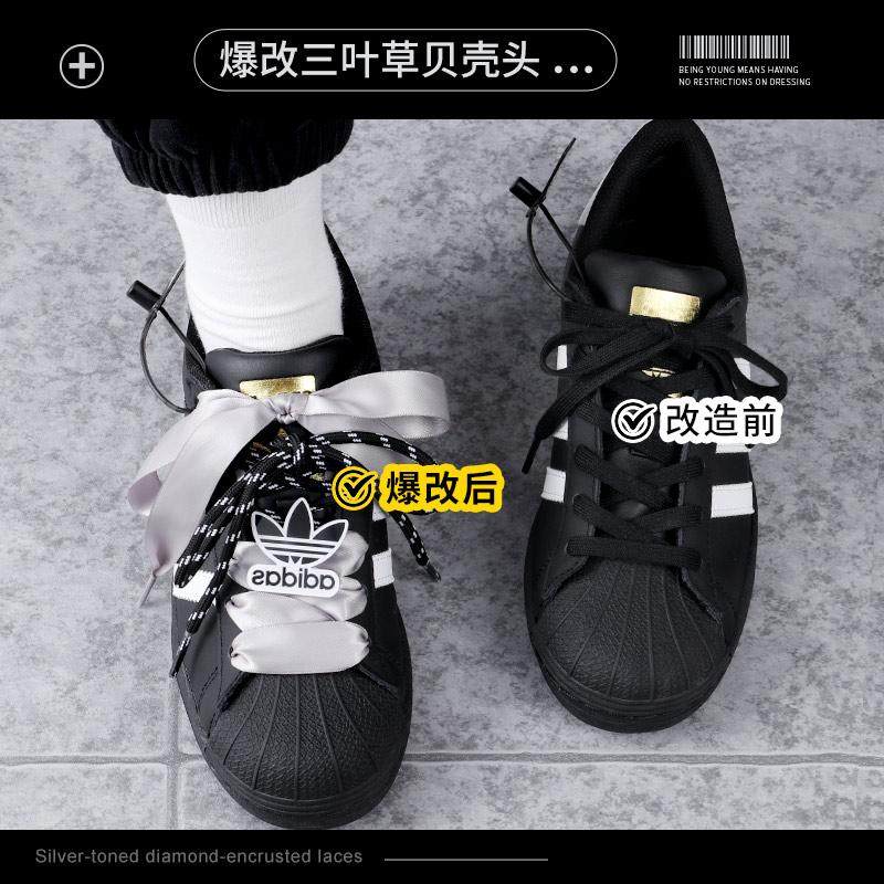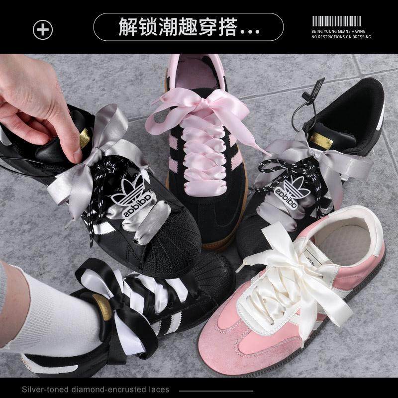 丝绸鞋带阿迪贝壳头可拆卸德训板鞋韩版灰色diy三叶草立牌扁宽绳