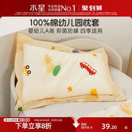 水星家纺母婴A类全棉印花枕套