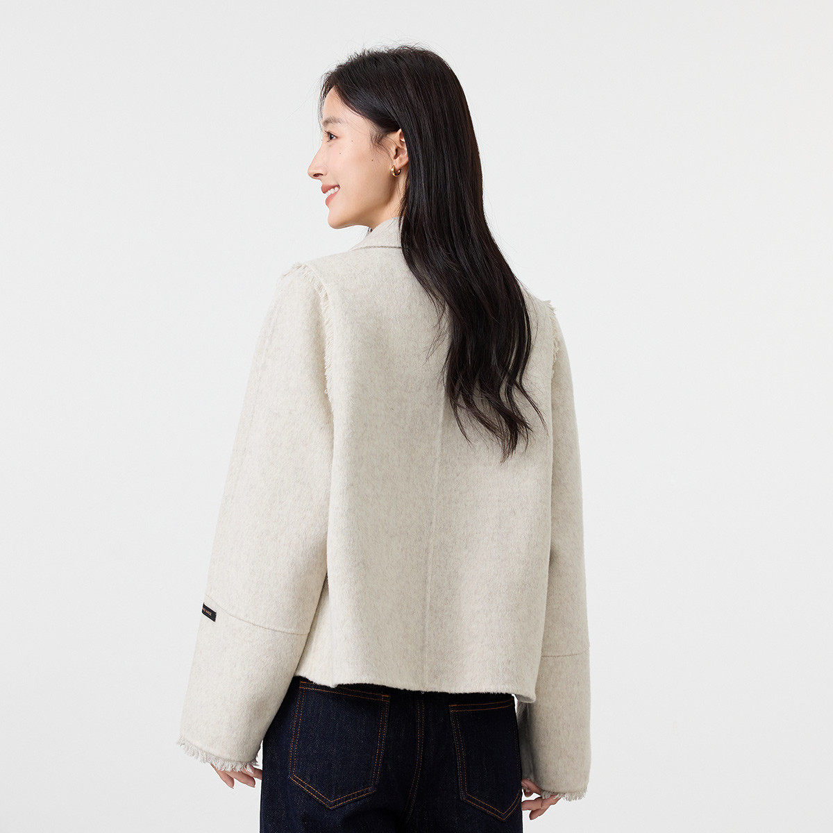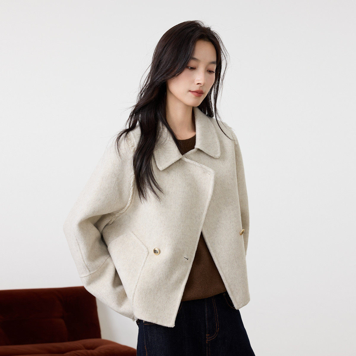 茵曼2025冬季新款绵羊毛短款双面毛呢外套女羊绒大衣休闲时尚翻领