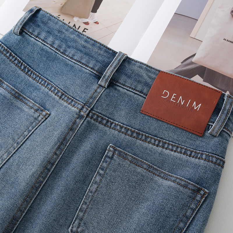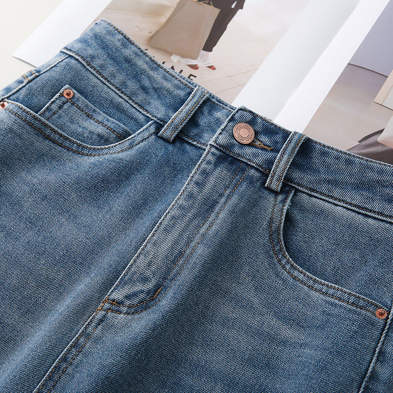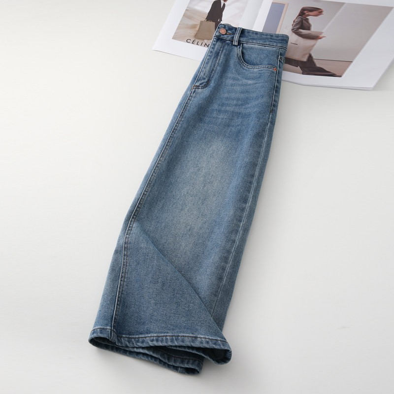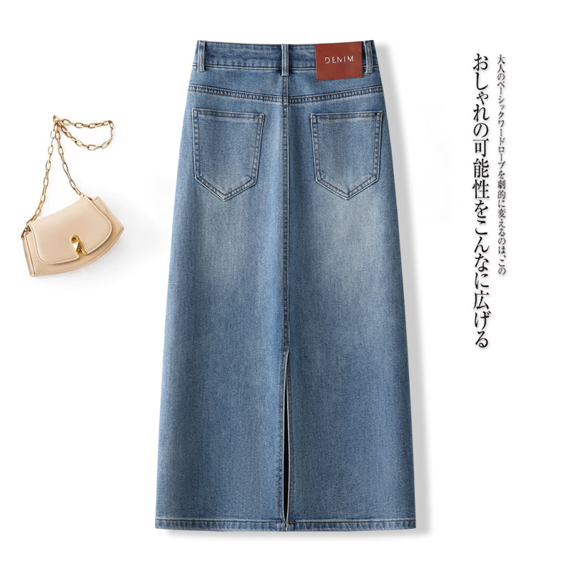 啄木鸟后开叉牛仔半身裙女春秋季高腰显瘦a字长裙一步包臀裙