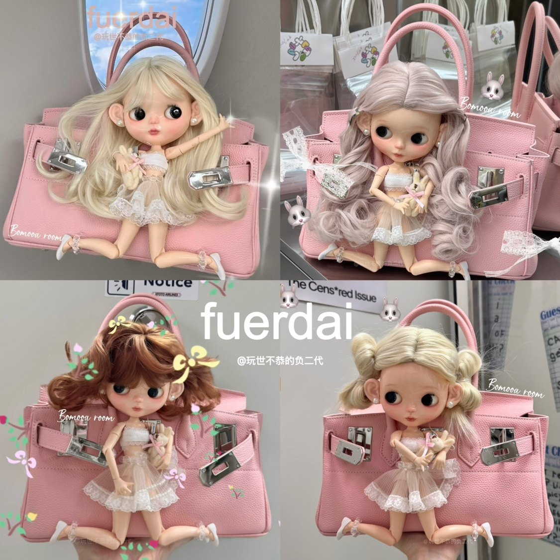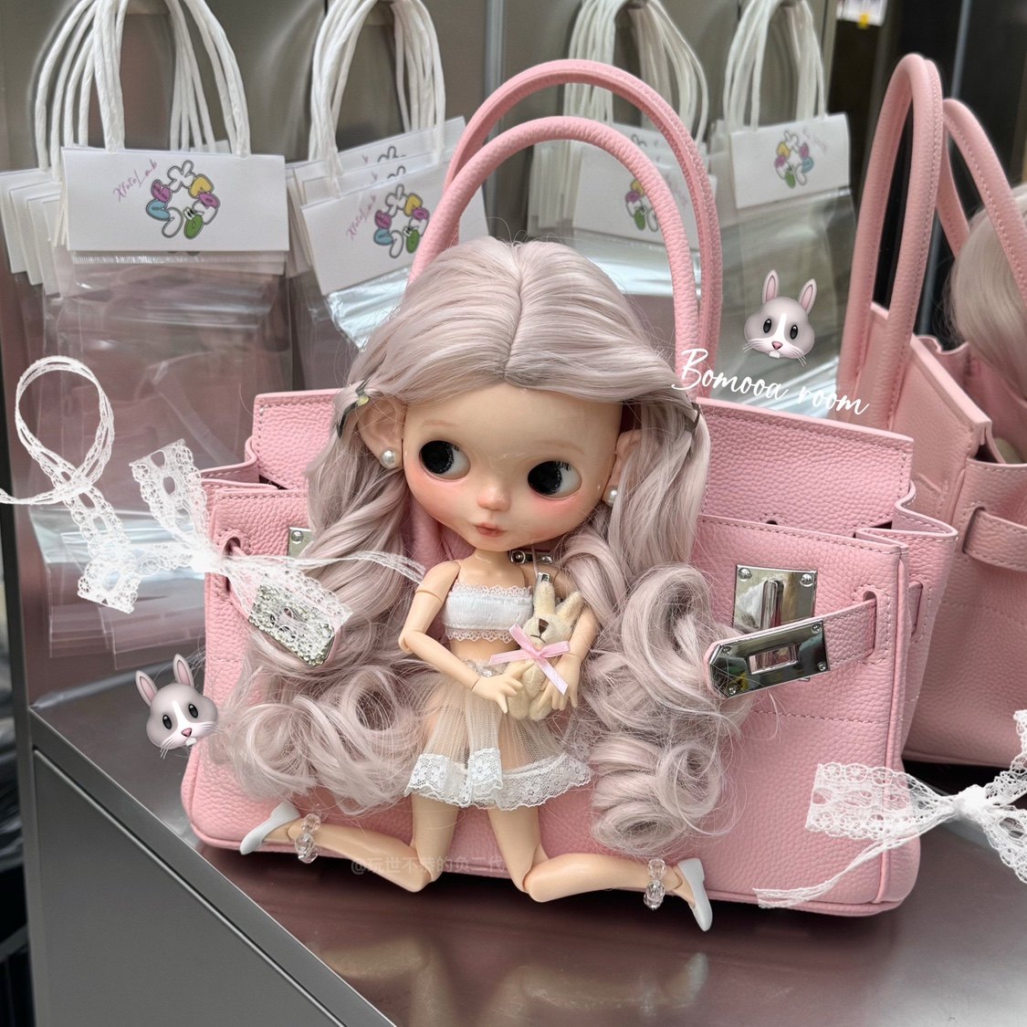成品掉落 可爱娃娃加包包治愈系陪伴 柔美淡粉色手提铂金包牛皮